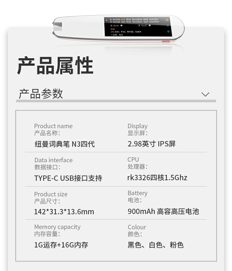 纽曼N3-4.0pro扫描词典笔N3四代4.0Pro 16G单位:个 白色