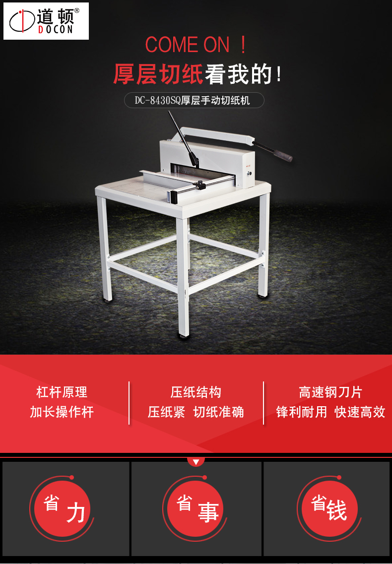 道顿(DOCON)DC-8430SQ 手动重型厚层桌面立式手动切纸机 裁纸机 标书 文件 书本书籍切纸刀 白色