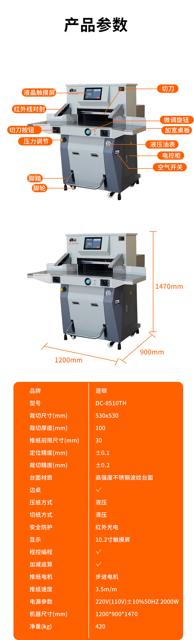 道顿(DOCON)DC-8510TH 液压程控切纸机 标书 文件 书本重型裁纸机 重型切纸刀 灰色