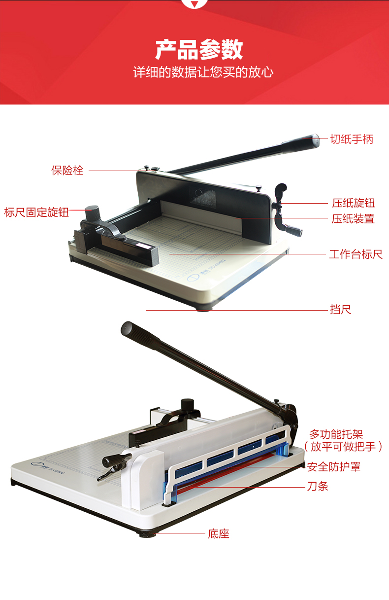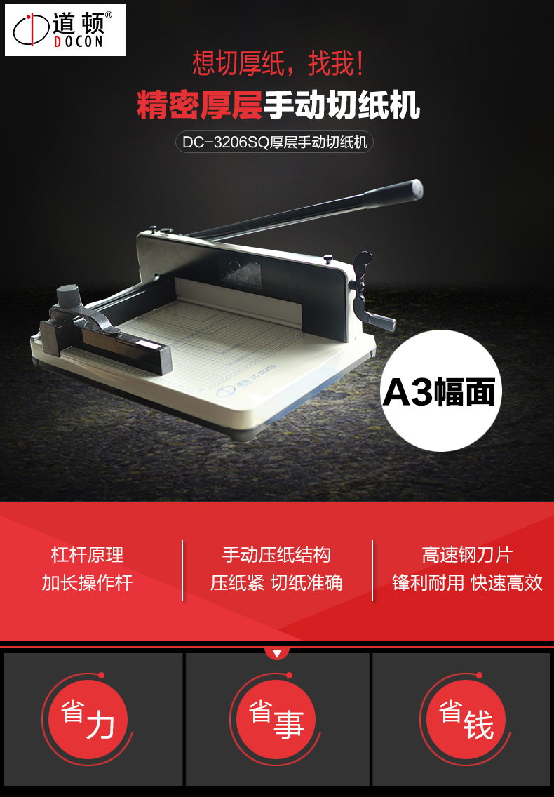 道顿(DOCON)DC-3206SQ A3幅面 手动重型厚层桌面式手动切纸机 裁纸机 标书 文件 书本书籍切纸刀 白色
