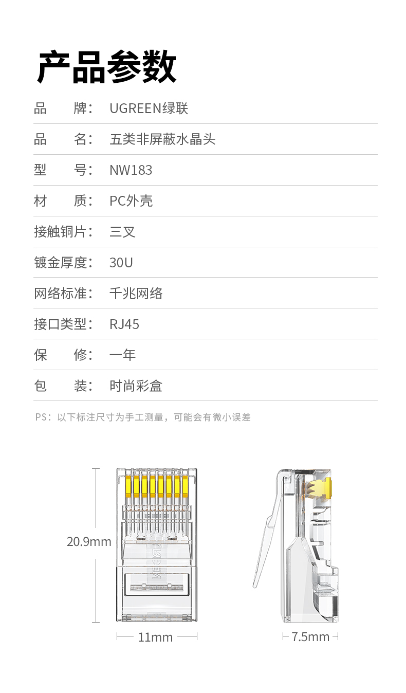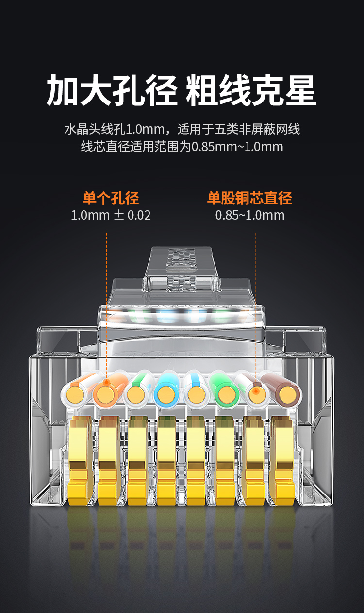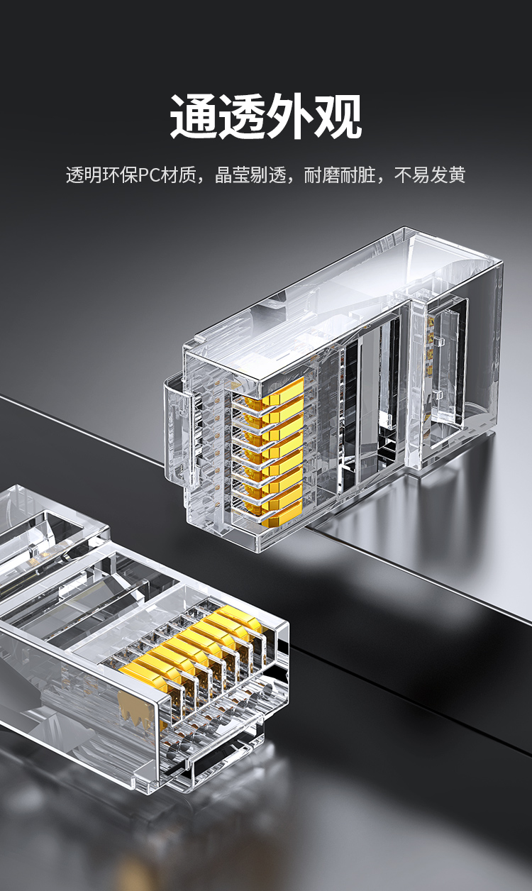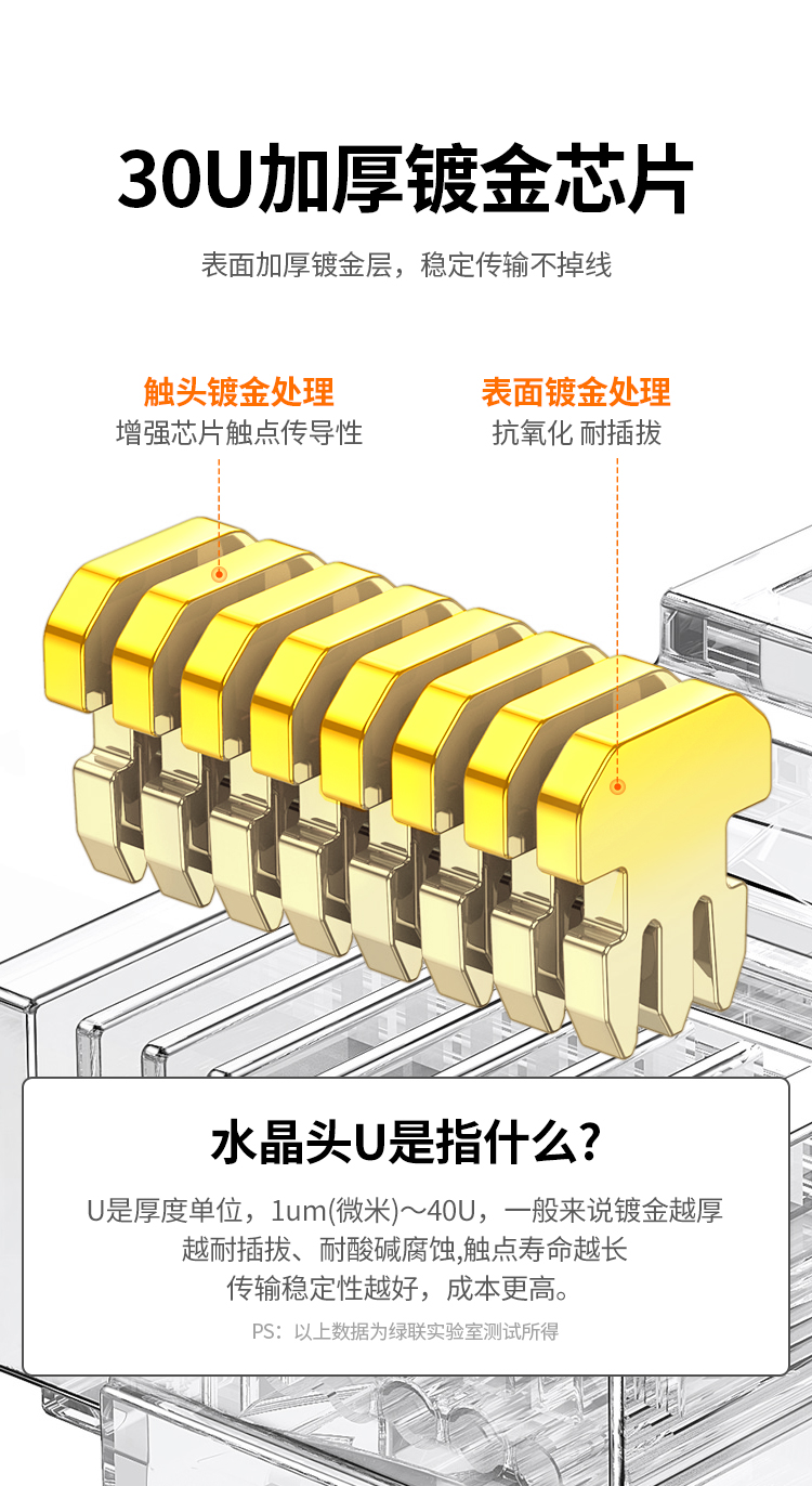 绿联 30156 超五类非屏蔽水晶头 30U加厚镀金工程级千兆网络接头 100个装 白色