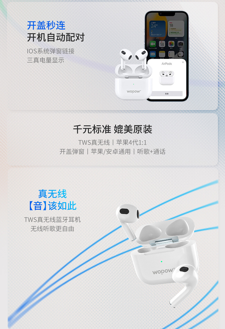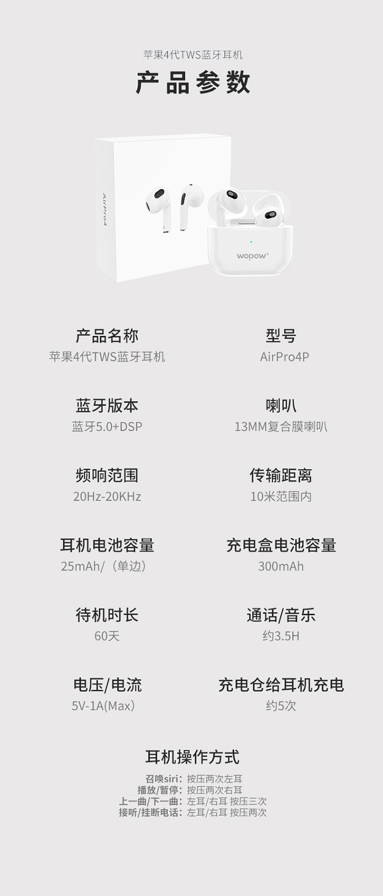 沃品 TW S蓝牙耳机 AirPro4P 白色