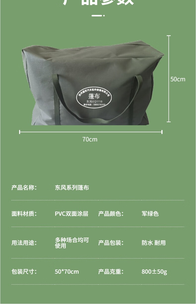 瀛军 东风EQ1118G专用运输车加棉篷布加厚运输车篷布保温型通用款篷布 质保三年 军绿色