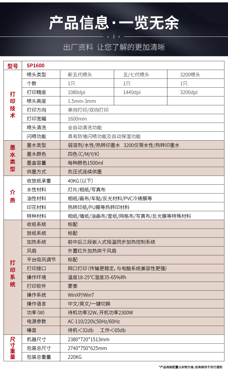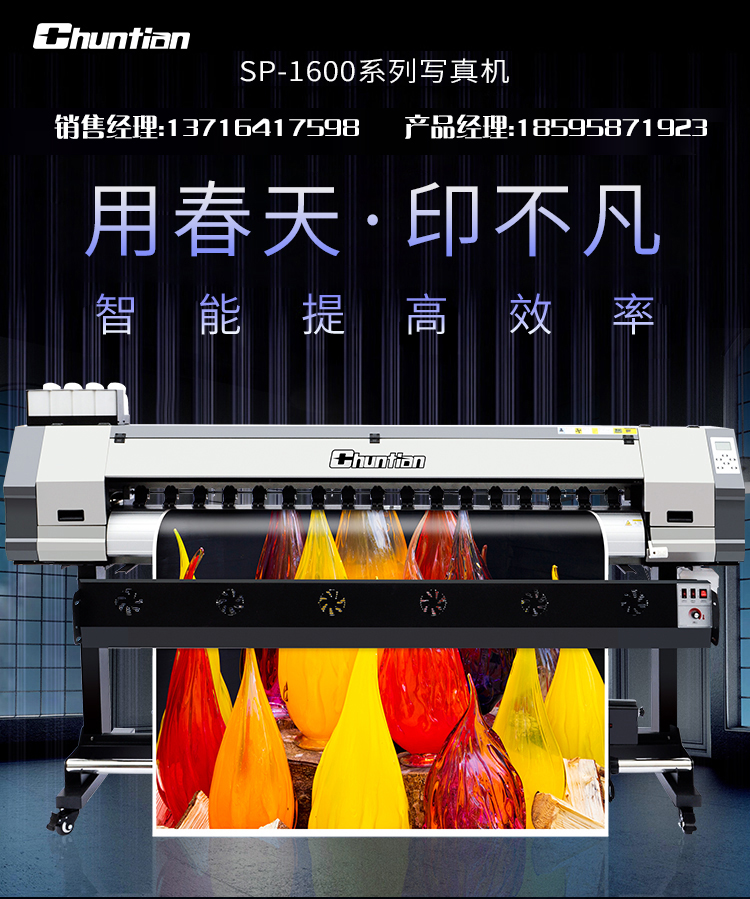TCHUNTIAN春天压电写真机SP1600户内外高精度写真机1.6米UV卷材机高速广告喷绘打印机 单头新五代 黑色