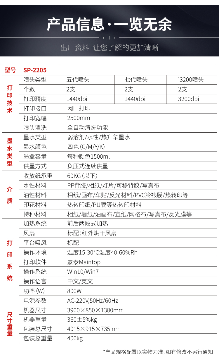 TCHUNTIAN春天2.5米高精度SP2205压电写真机户外高速打印机户内写真喷绘一体机油性-双头七代 金色