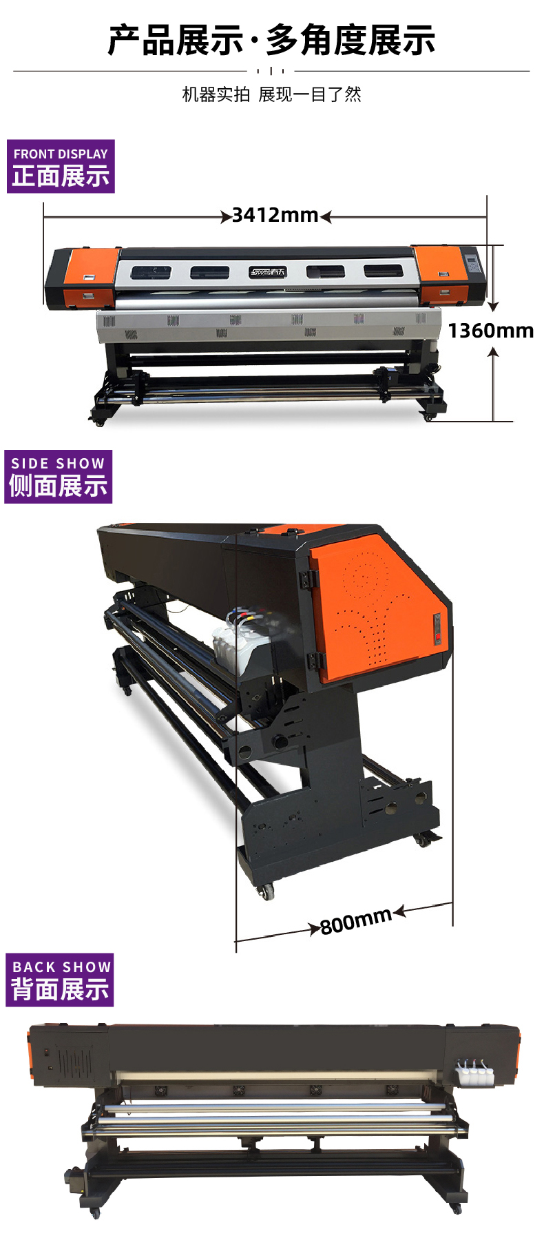 TCHUNTIAN春天2.2米高精度压电写真机户外广告喷绘机户内外写真机sp2200壁纸壁画高速打印机*双头七代 橘色