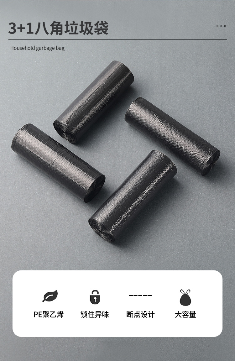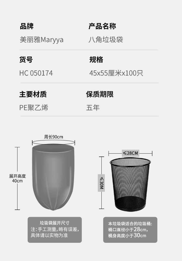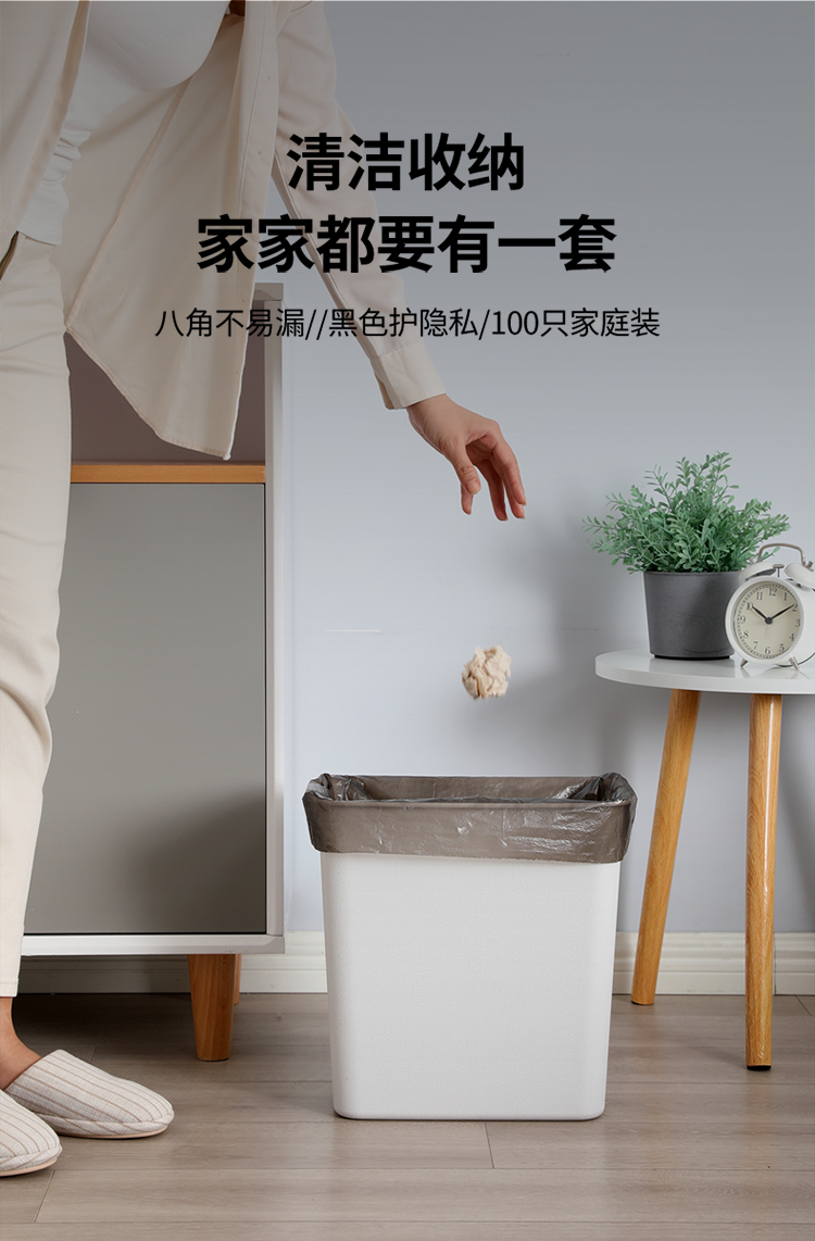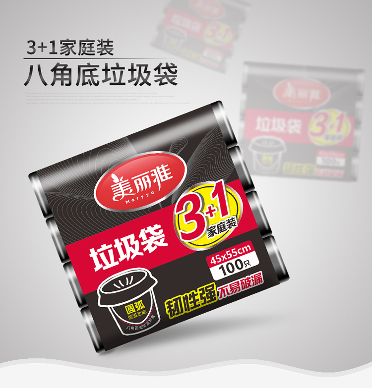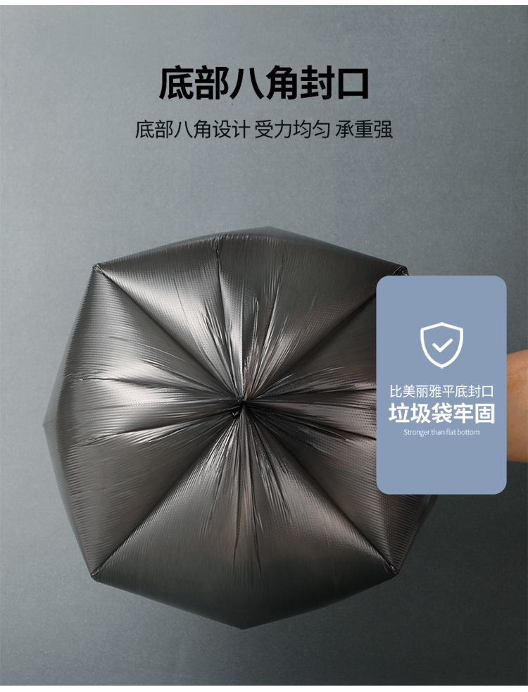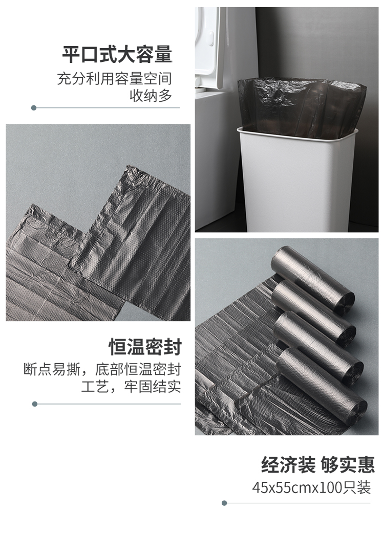 美丽雅垃圾袋点断式平口0.55丝45*55cm黑色垃圾桶袋清洁纸篓塑料袋100只 HC050174 黑色