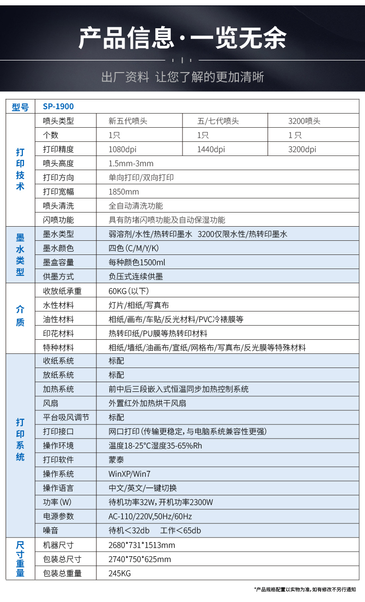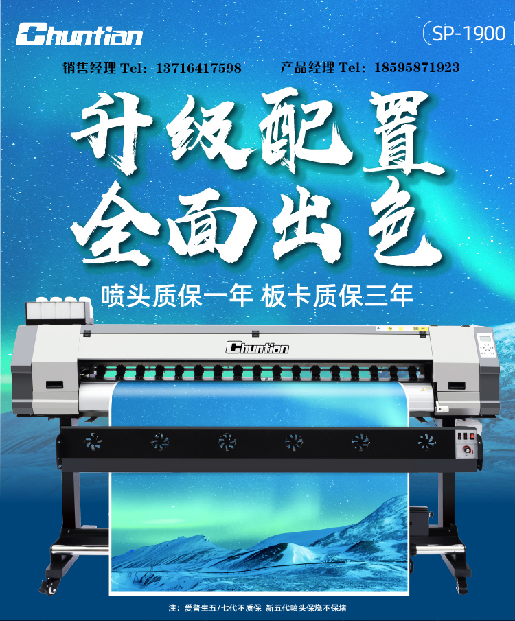 TCHUNTIAN春天SP-1900高精度压电写真机1.9广告喷绘户内写真机UV卷材机户外室内写真机*单头七代 白色