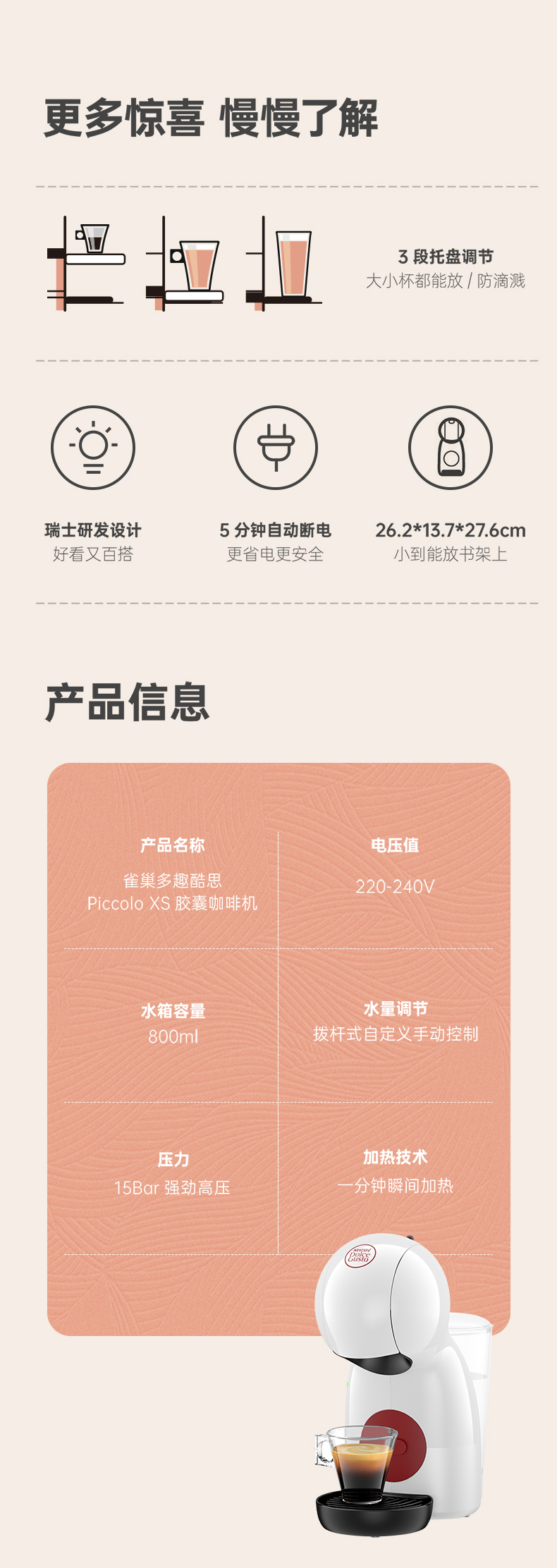 DOLCE GUSTO雀巢 半自动胶囊咖啡机 小星星 Piccolo XS(单位:台) 白色