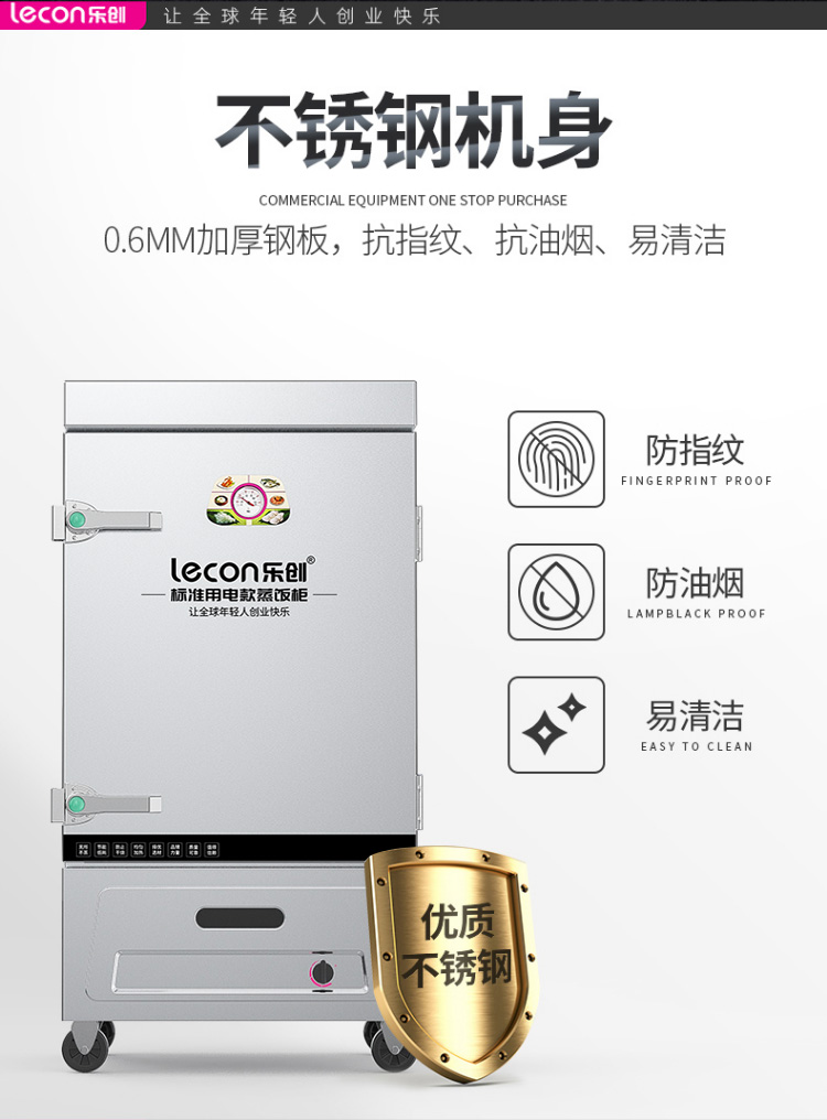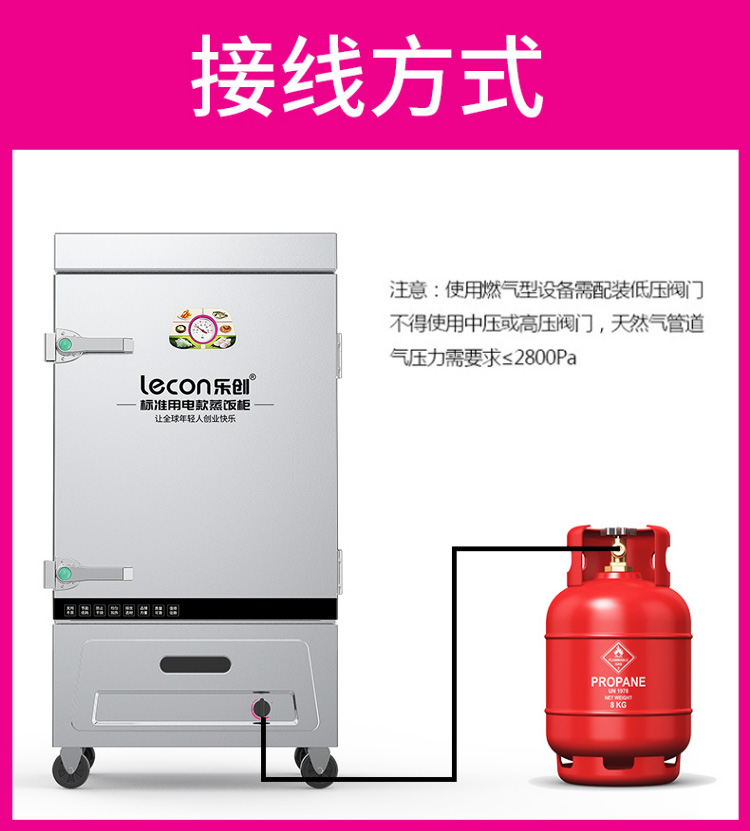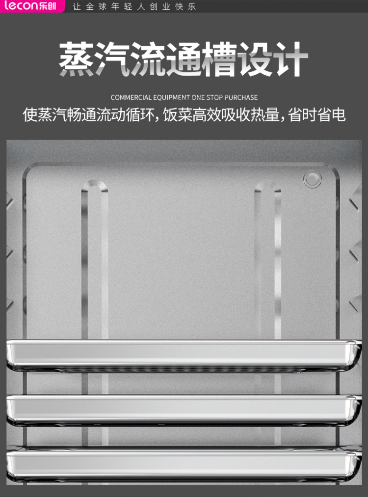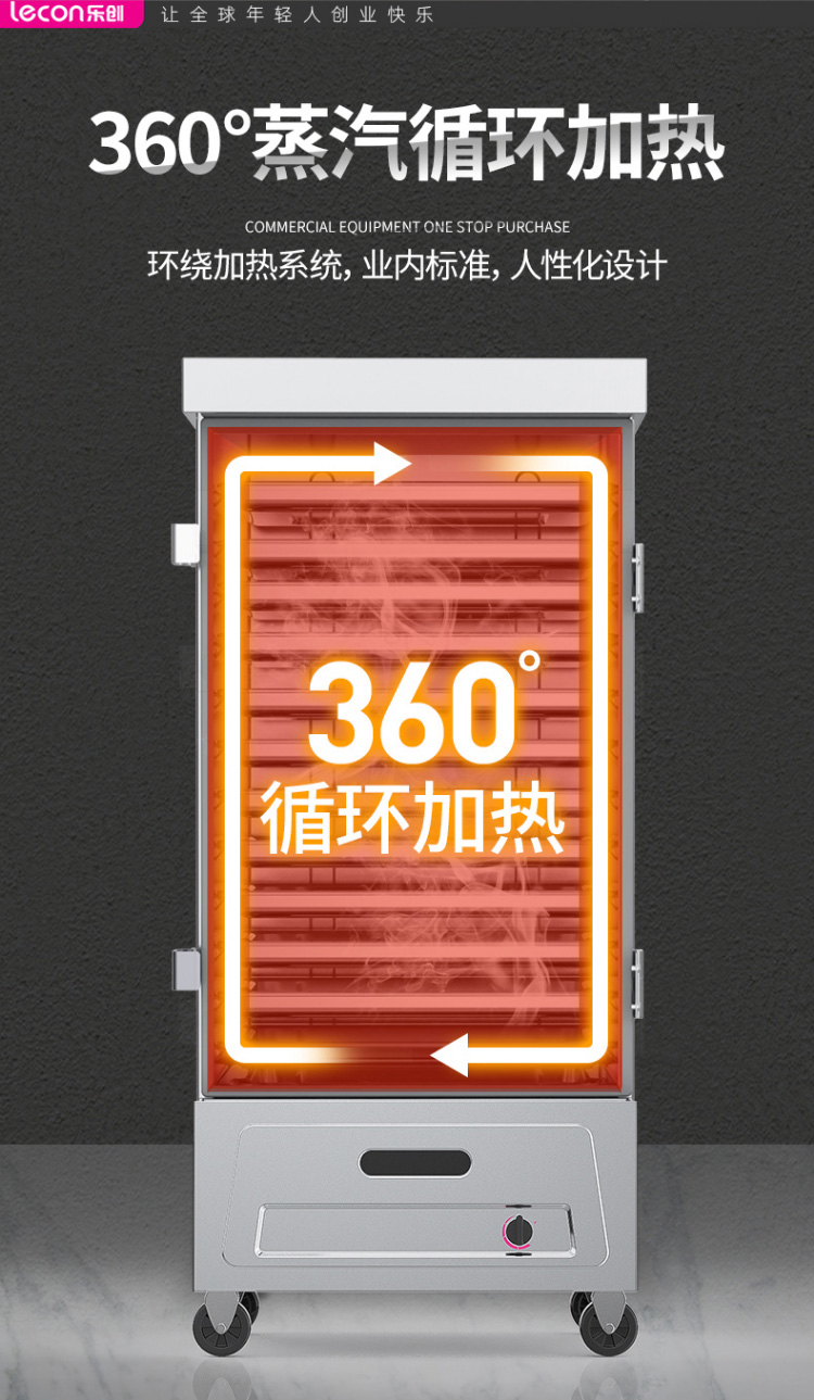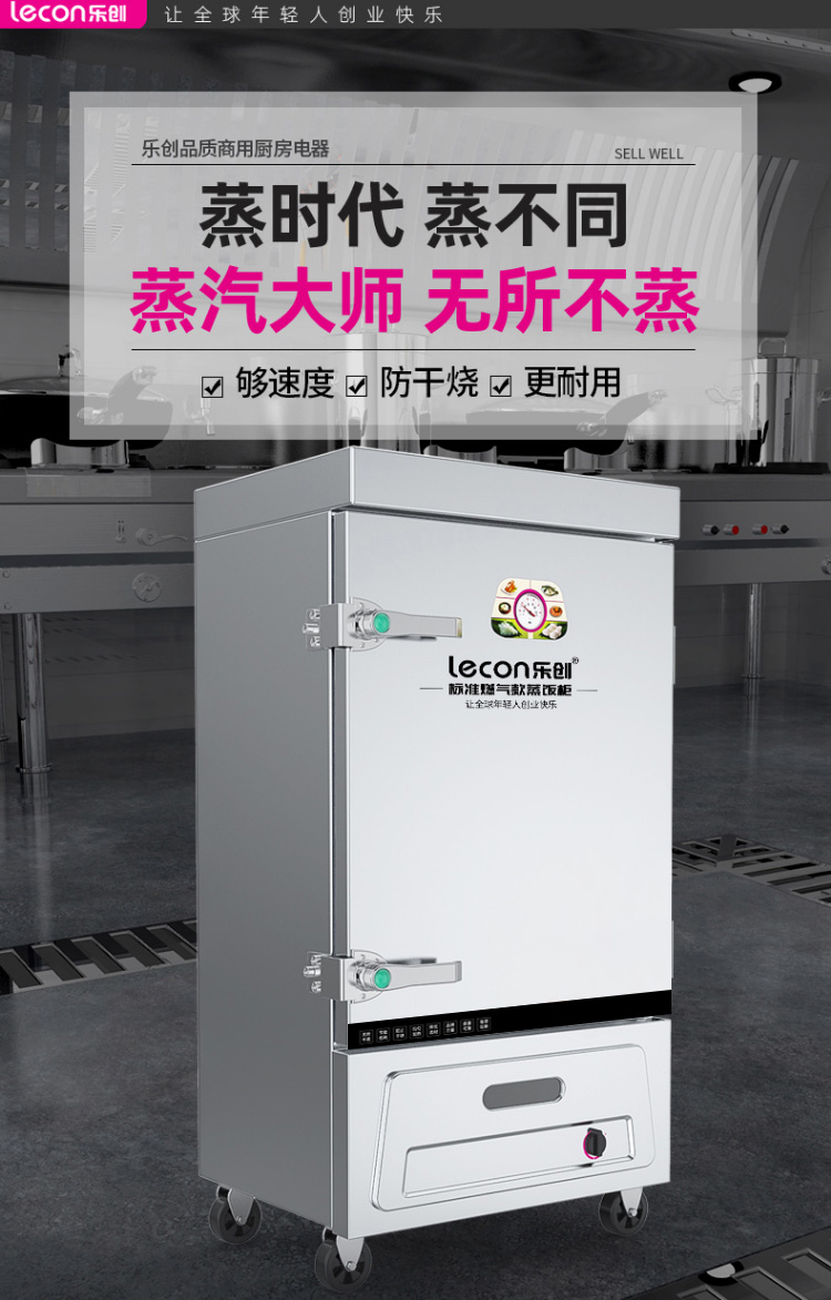乐创(lecon)商用蒸饭柜 学校企业酒店食堂单门蒸箱蒸包炉馒头炉 24盘燃气款 LC-J-ZFR24【企业工程款】 不锈钢色
