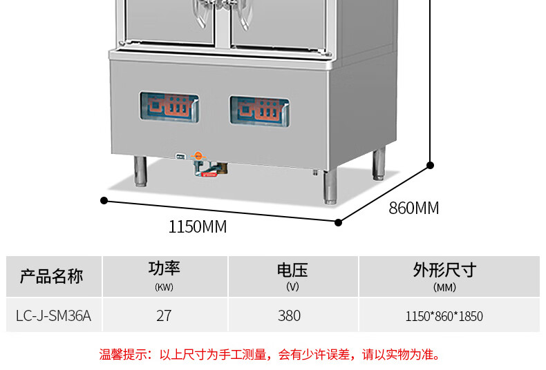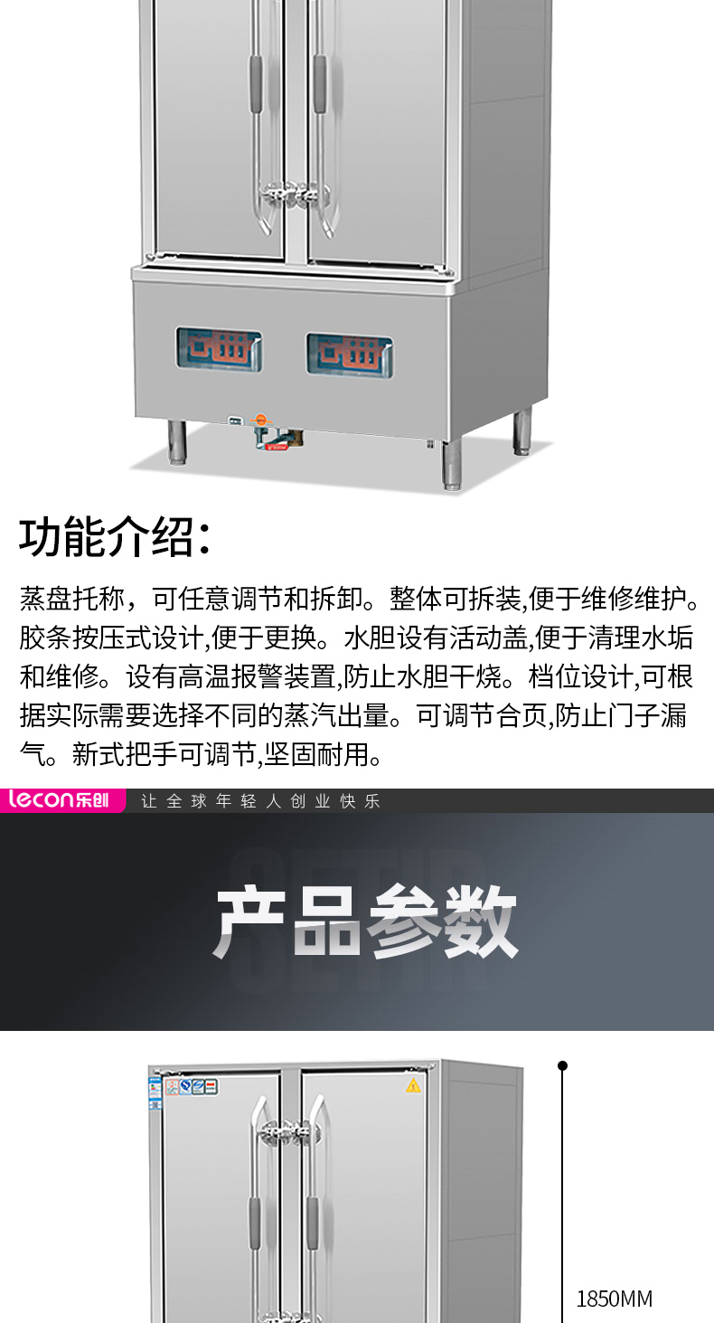 乐创( lecon) 商用海鲜蒸柜 食堂酒店双门电蒸柜 工程款 LC-J-SM36A 不锈钢色