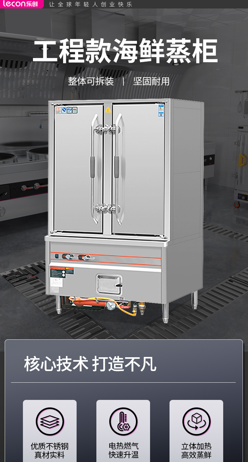 乐创( lecon) 商用海鲜蒸柜 食堂酒店上下双门电热蒸柜 工程款 LC-J-SX24AS 不锈钢色