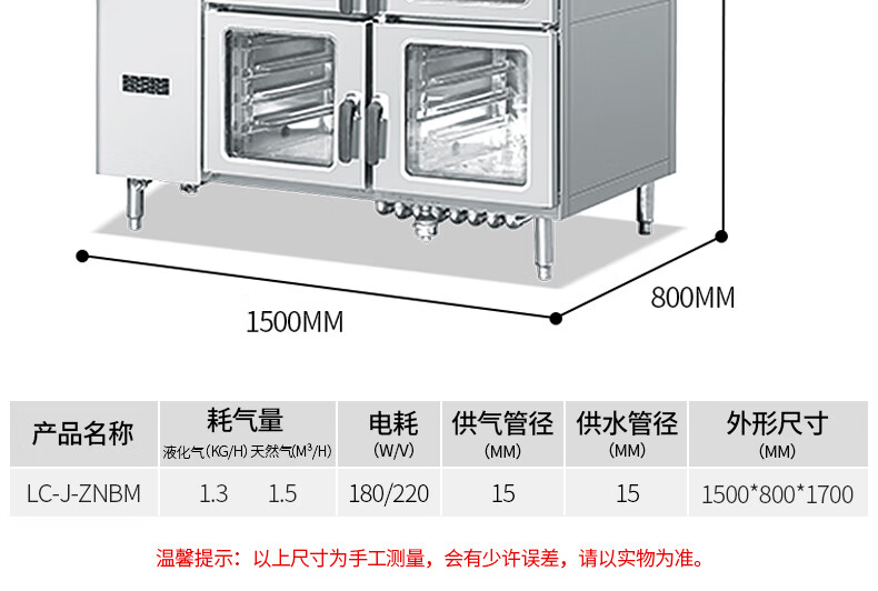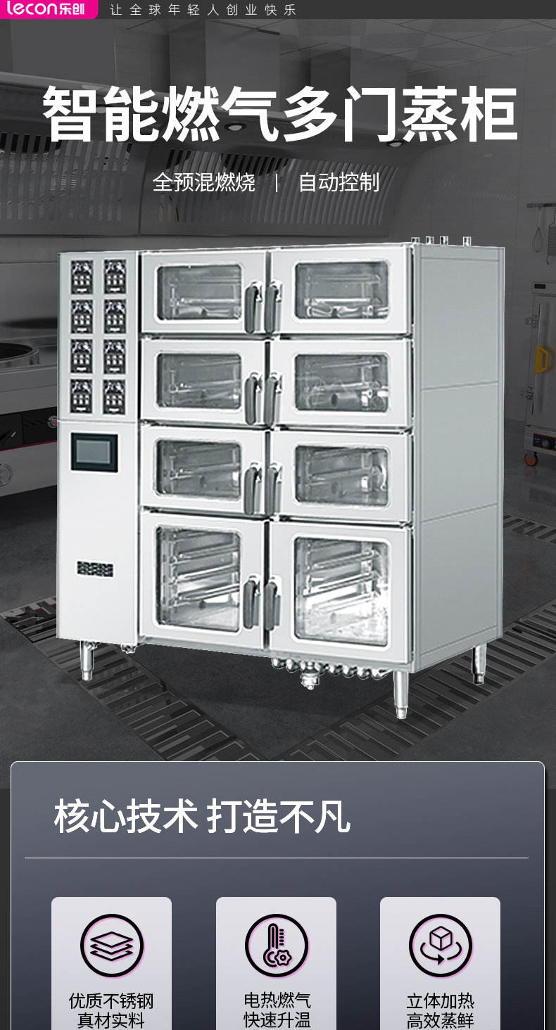 乐创( lecon) 商用多门蒸柜 食堂酒店智能燃气八门蒸柜 玻璃智能款 LC-J-ZNBM 不锈钢色