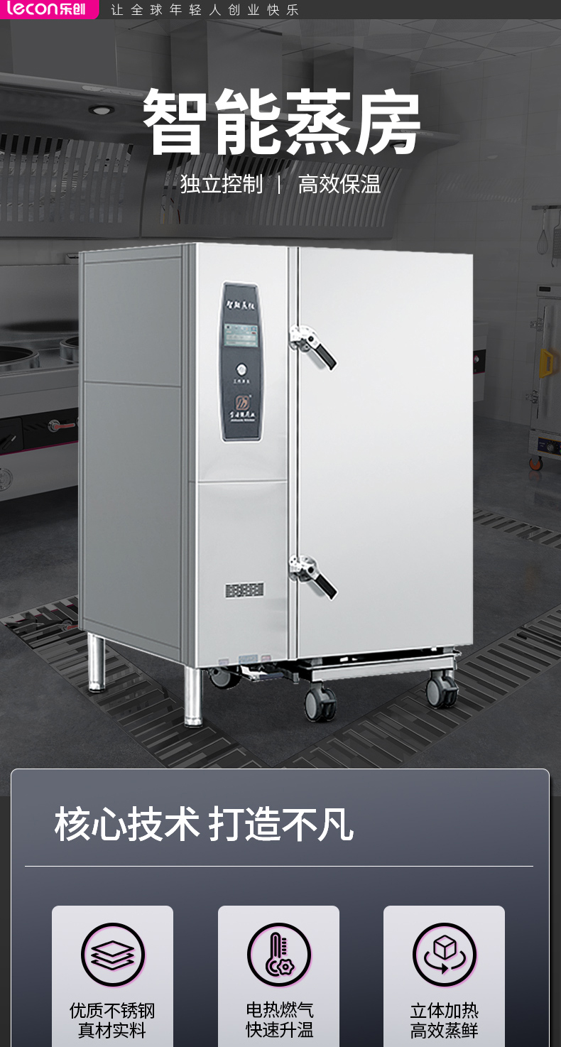 乐创( lecon) 商用蒸柜 食堂酒店12盘单门蒸箱 全预混式蒸房 LC-J-ZNZF12 不锈钢色