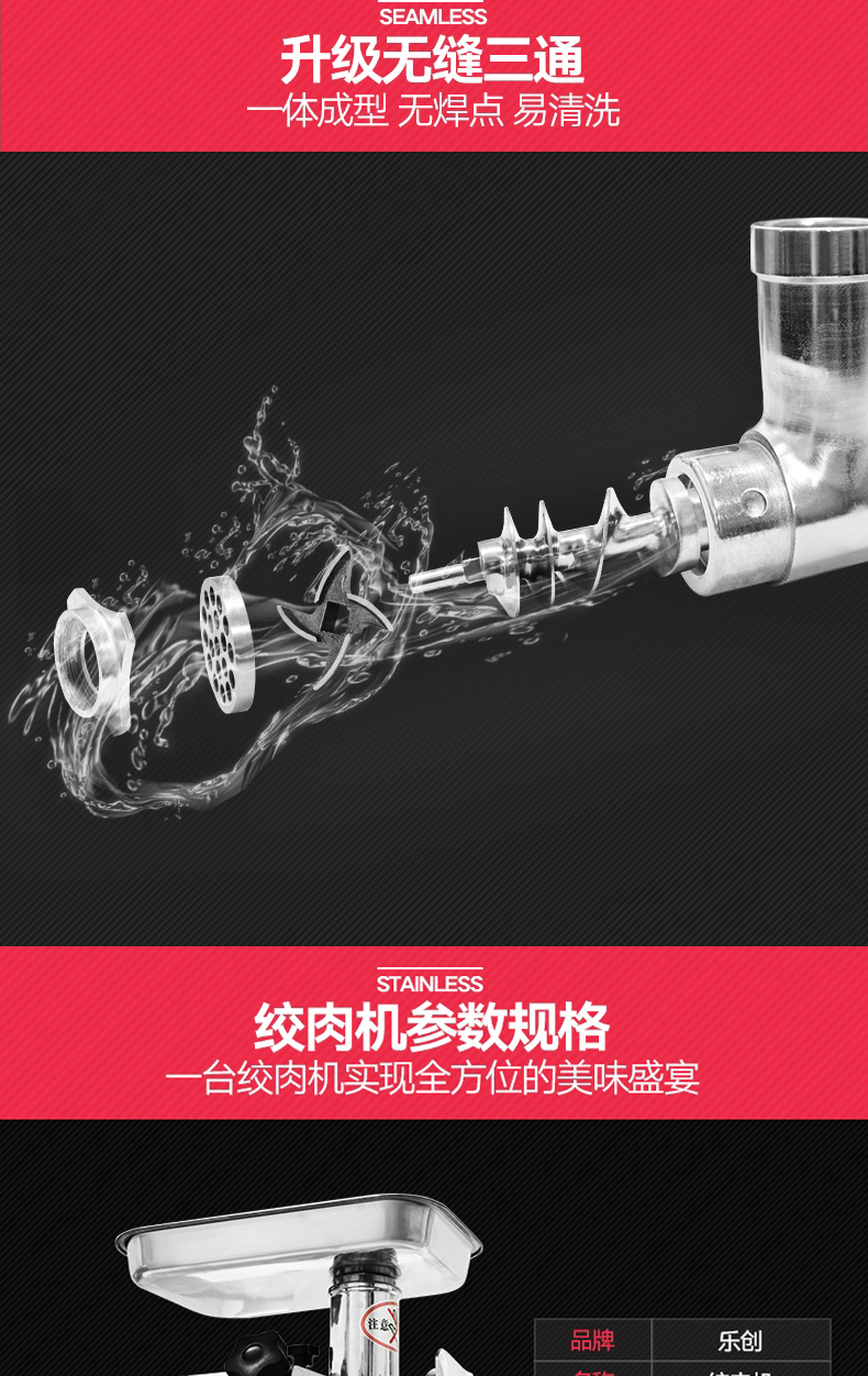 乐创(lecon)商用绞肉机 电动多功能12型不锈钢碎肉打肉机 LC-J-JRJ12 不锈钢色