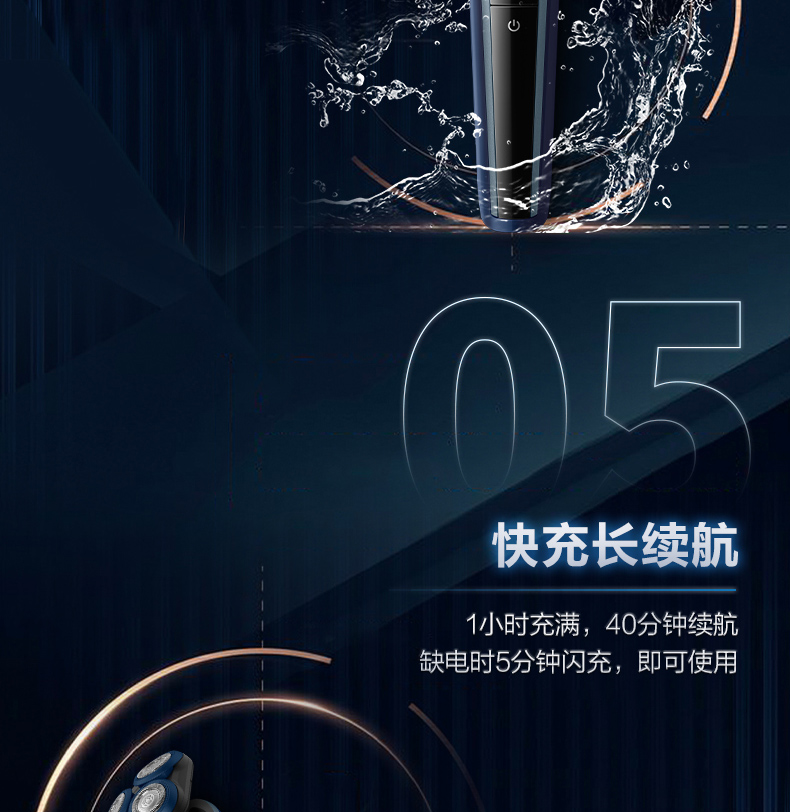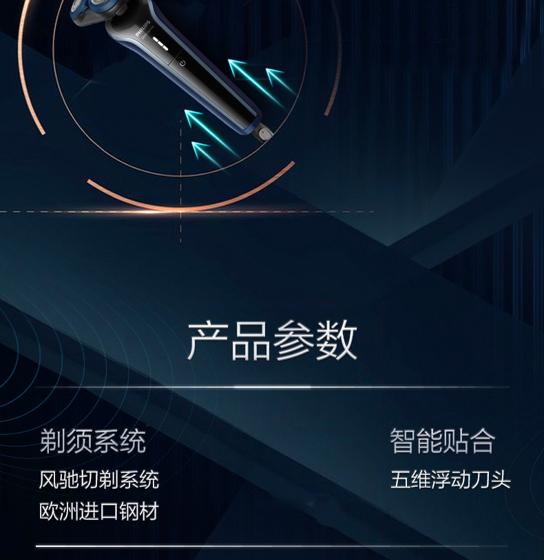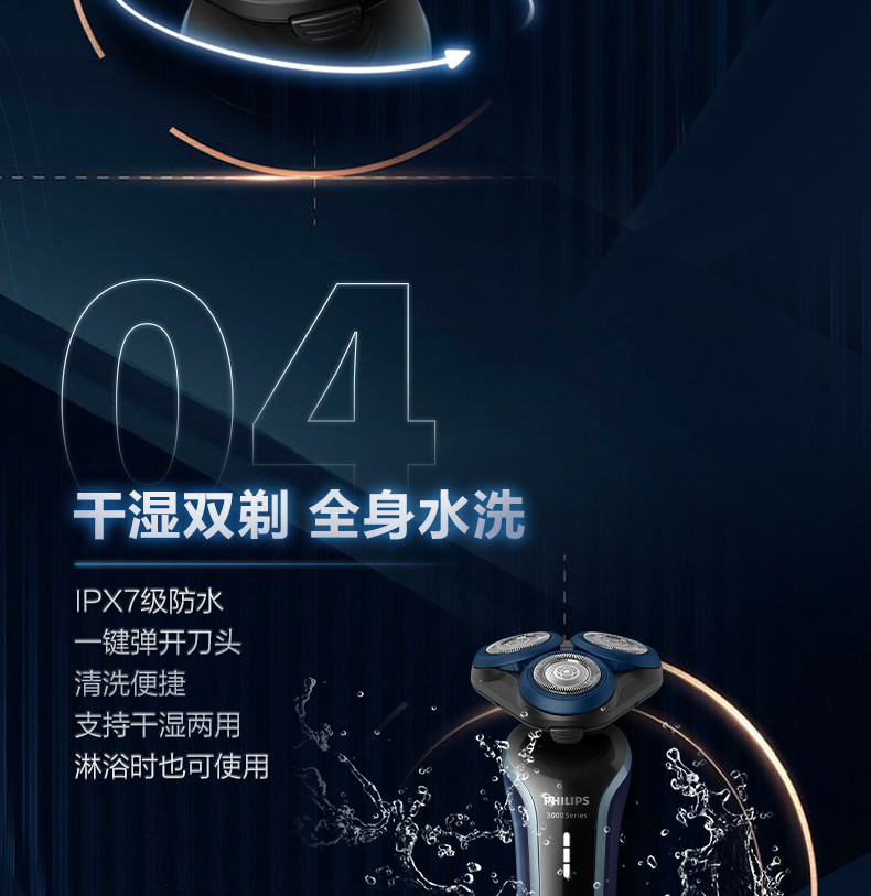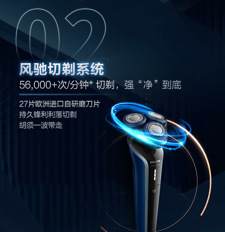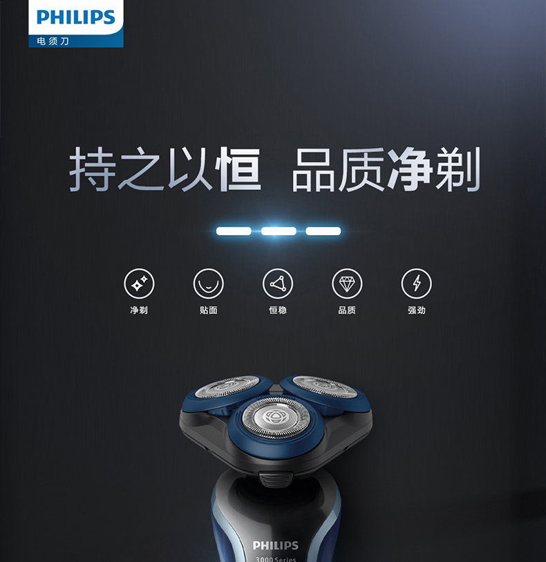 飞利浦电动剃须刀风驰切剃恒稳智控马达 自动调节干湿双剃刮胡刀S3608/10 黑色