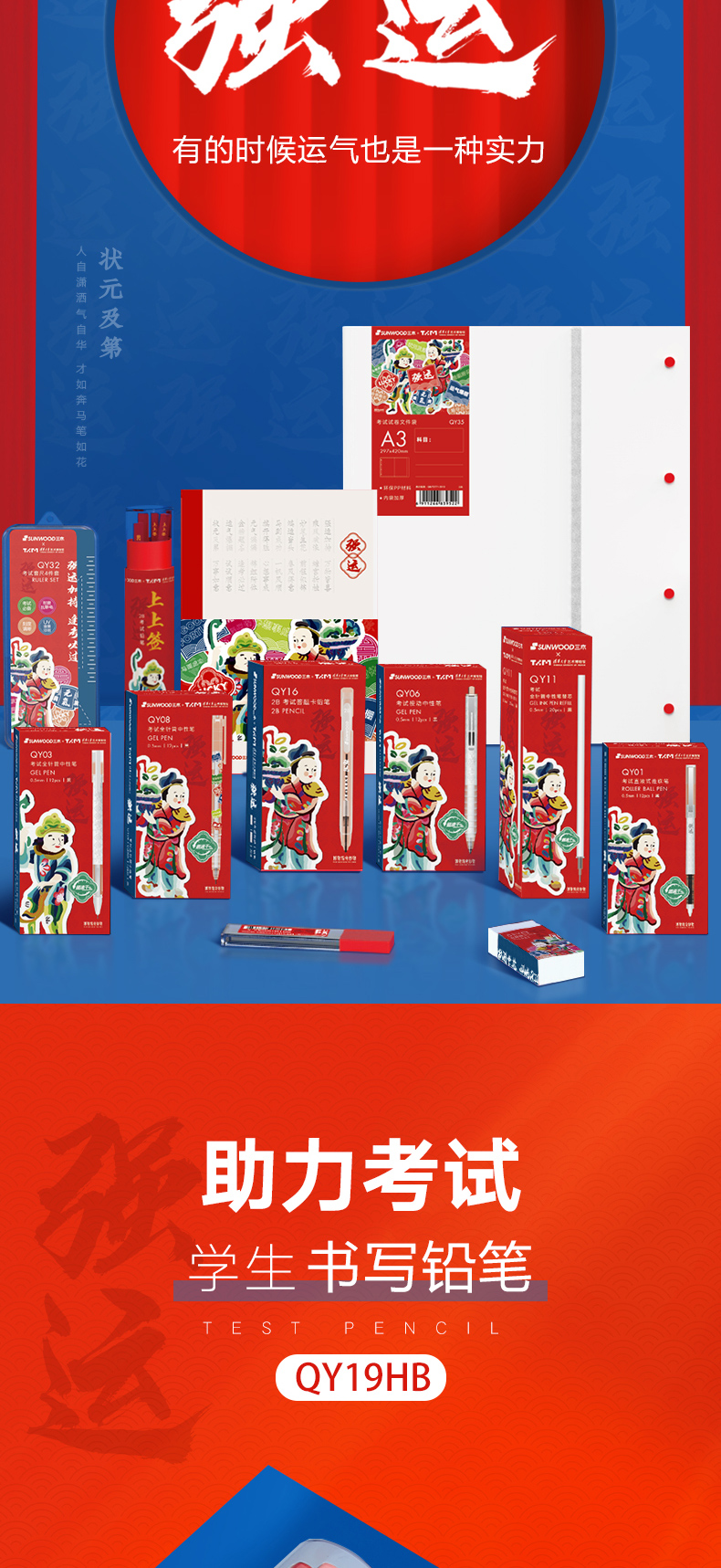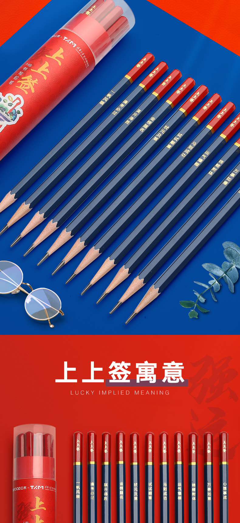 三木 QY19 清华大学艺术博物馆联名强运系列 HB铅笔 12支装 计价单位:盒 黑