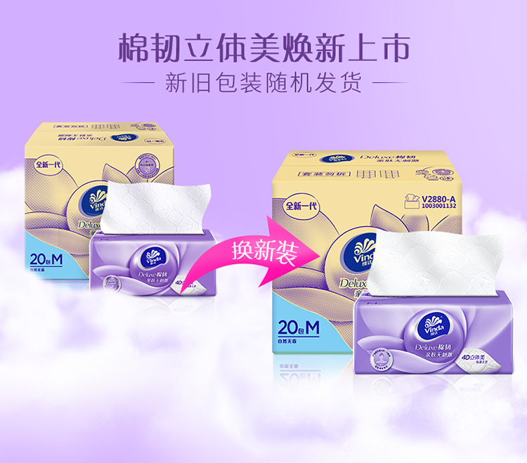 维达 棉韧抽纸 3层100抽*20包 抽纸 紫色(单位:箱)