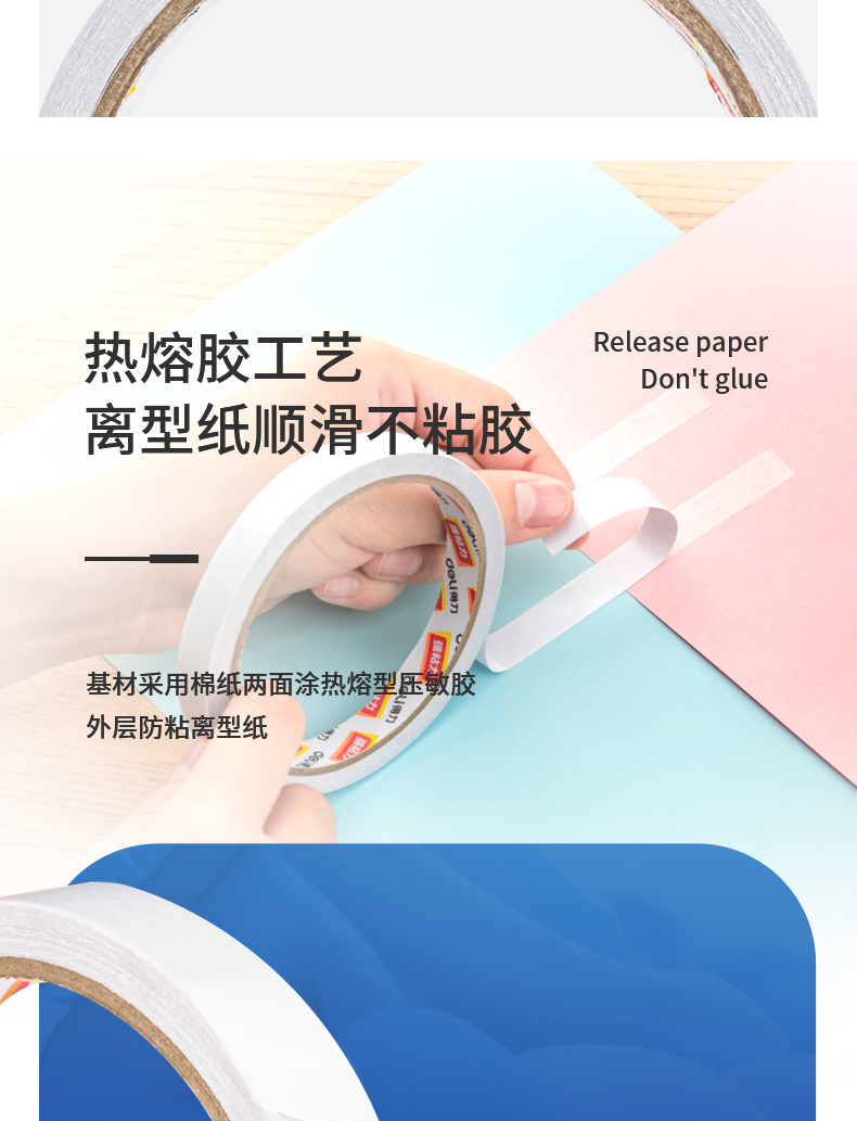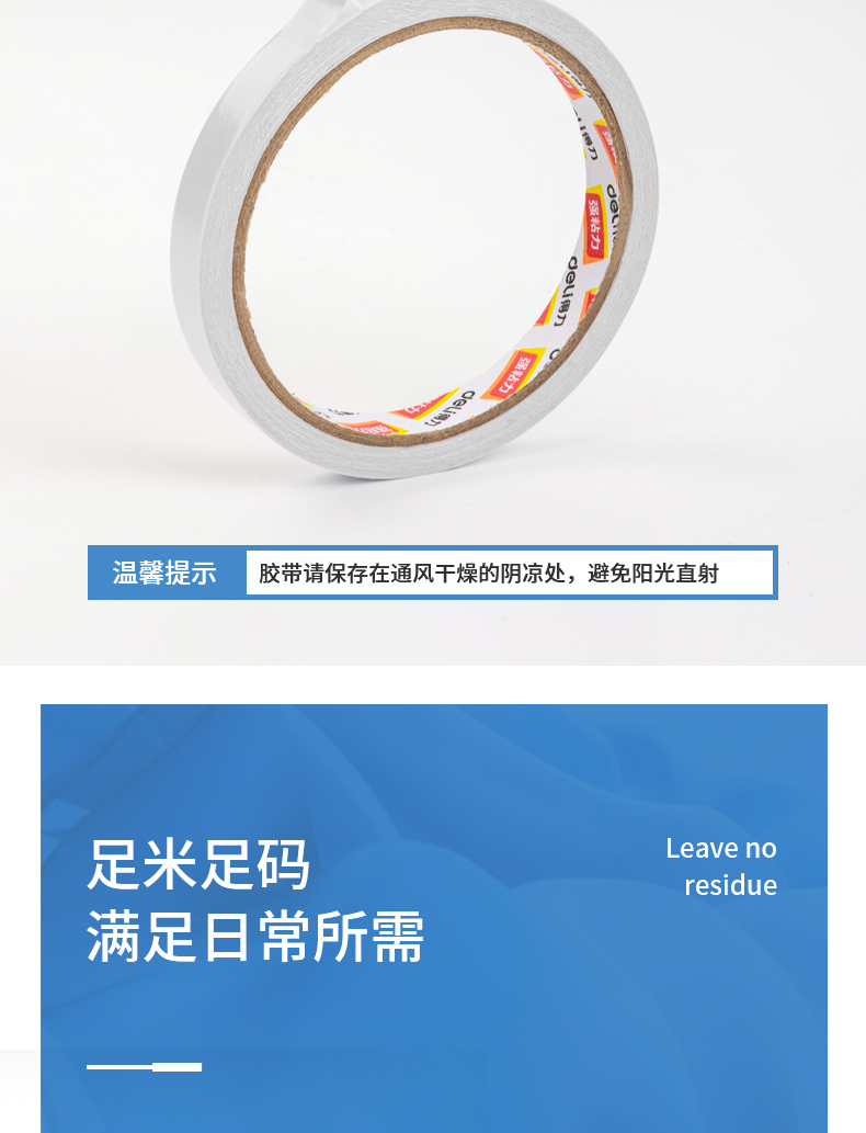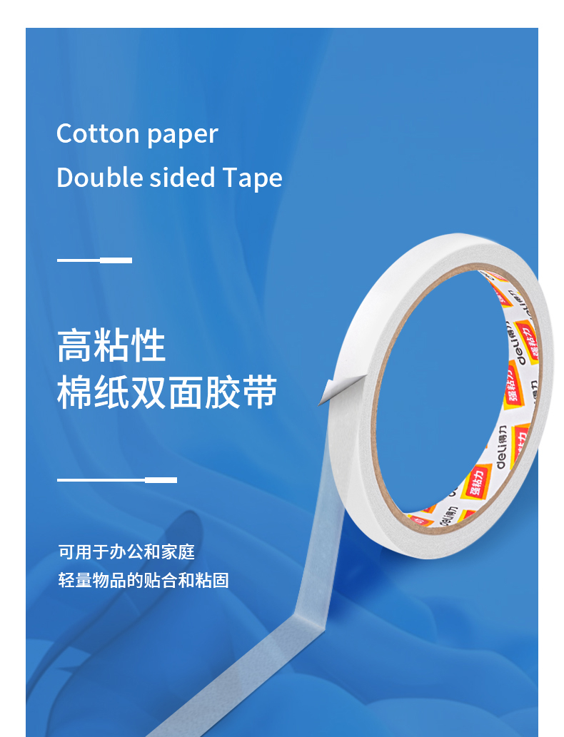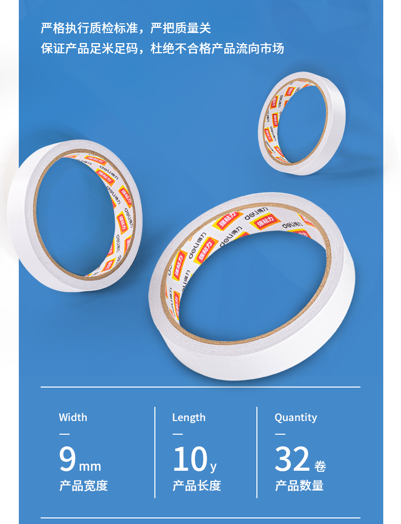 得力30400棉纸双面胶带9mm*10y*80um(白)(32卷/袋) 白色