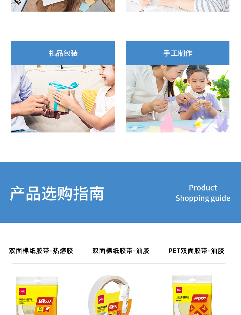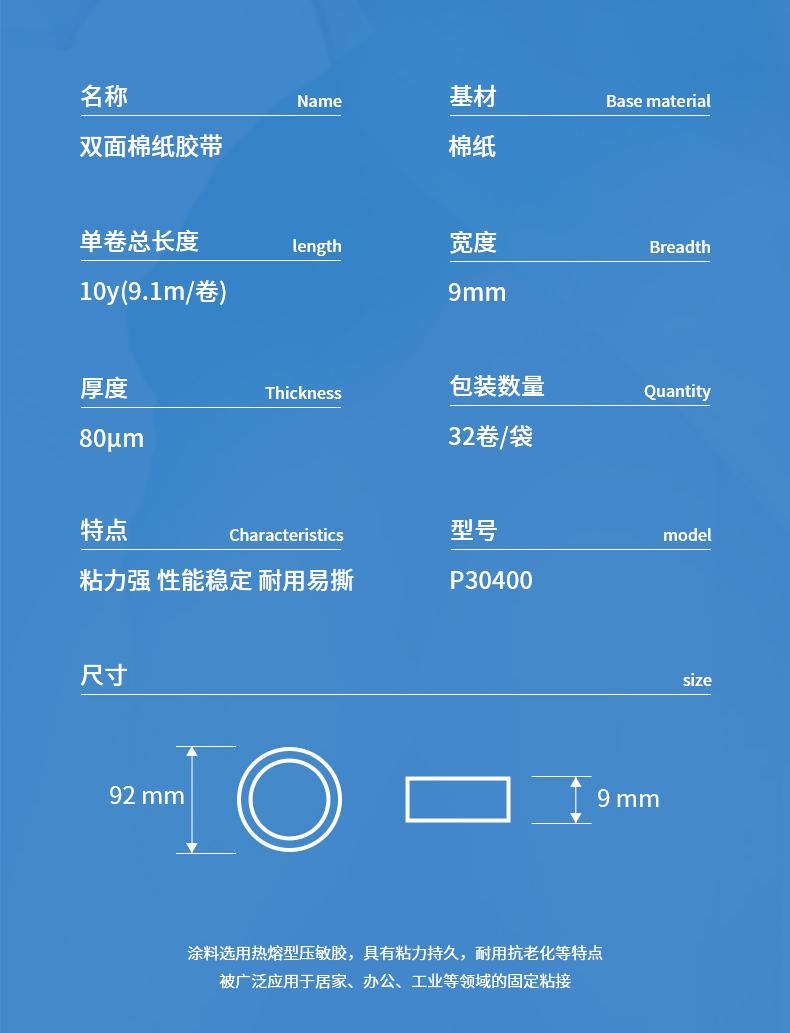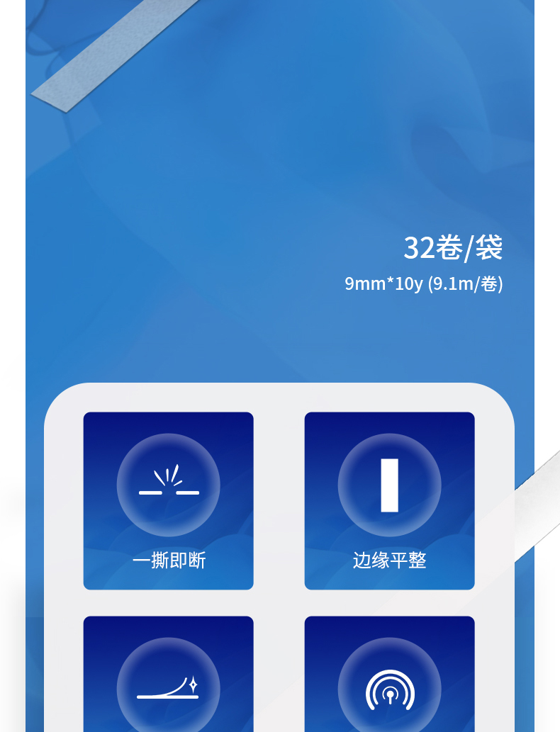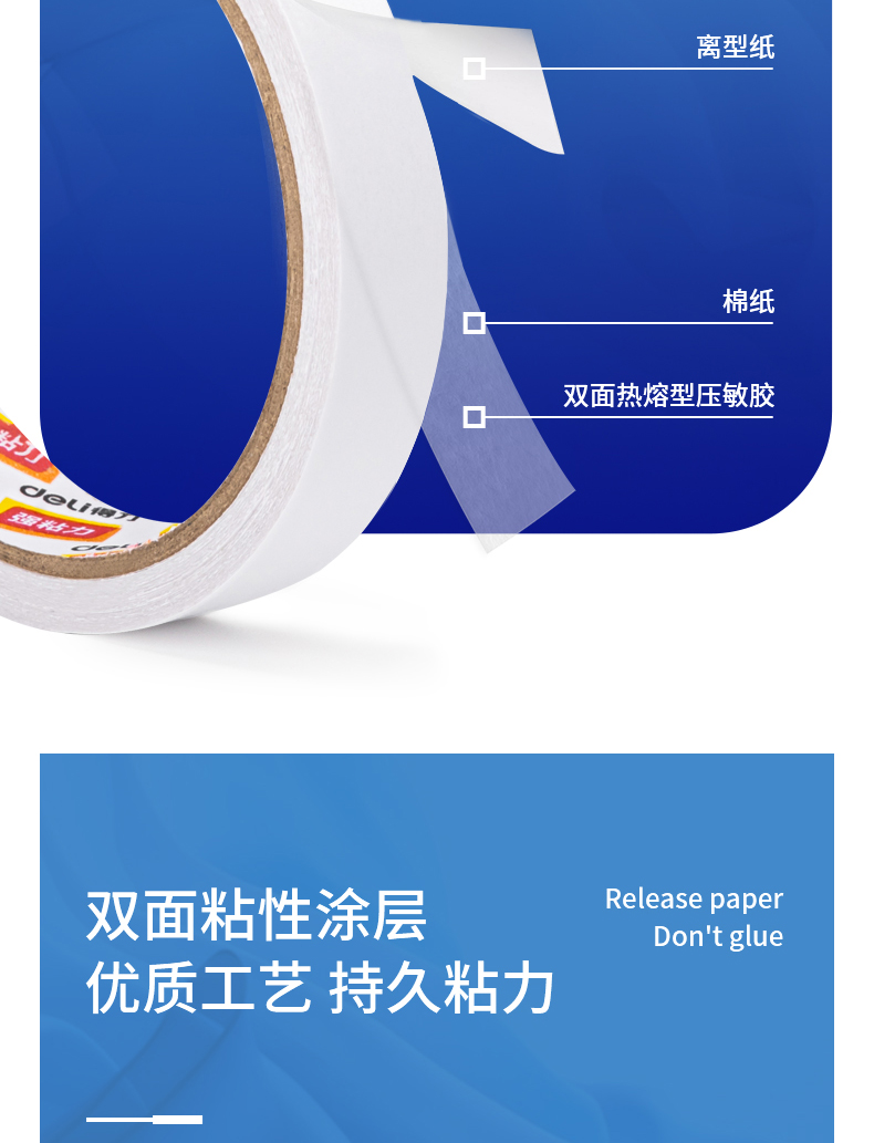 得力30400棉纸双面胶带9mm*10y*80um(白)(32卷/袋) 白色