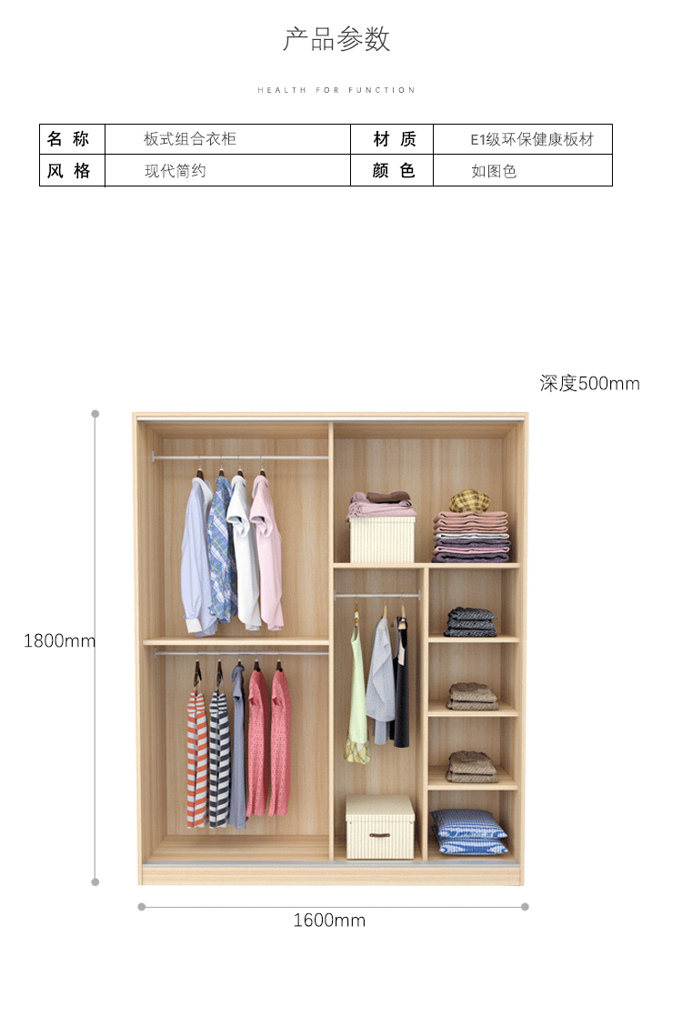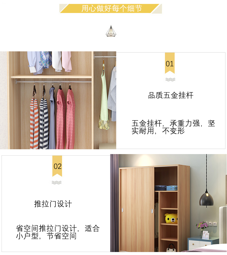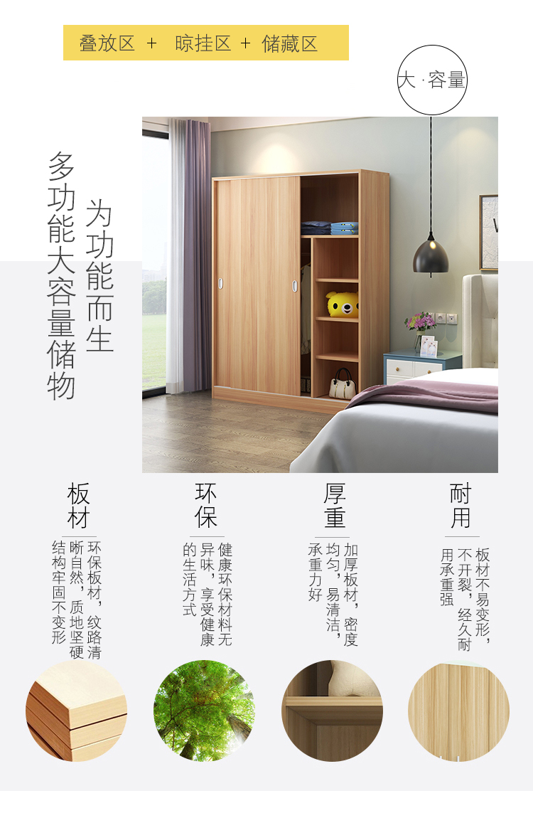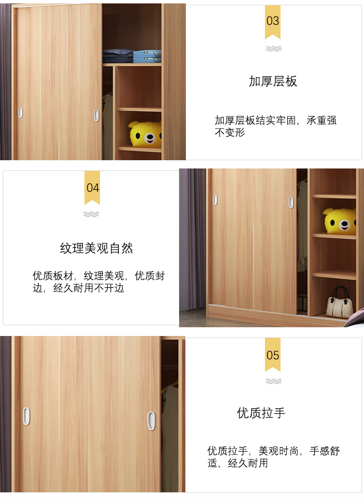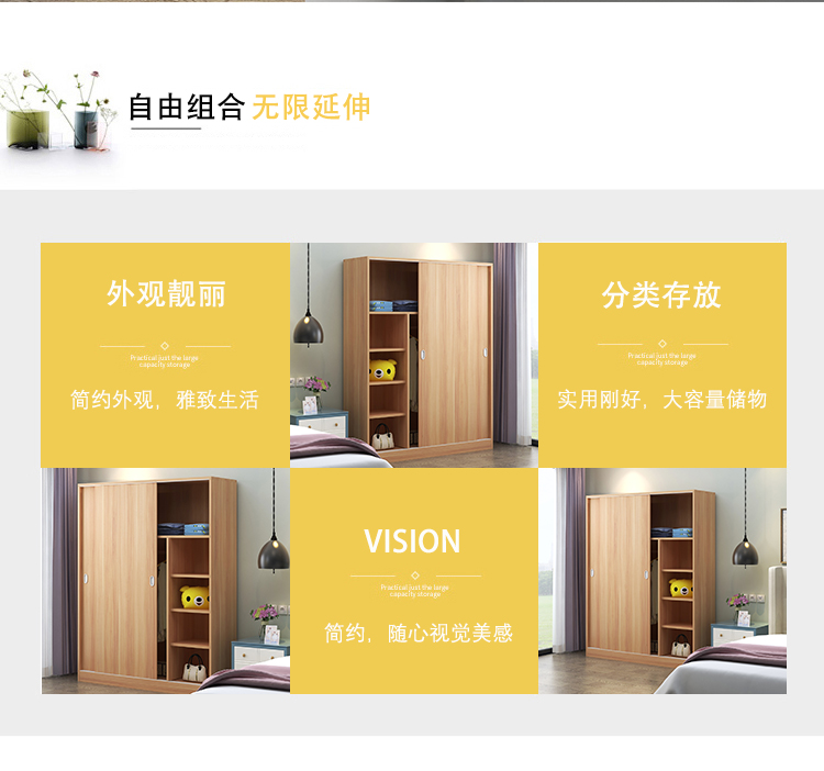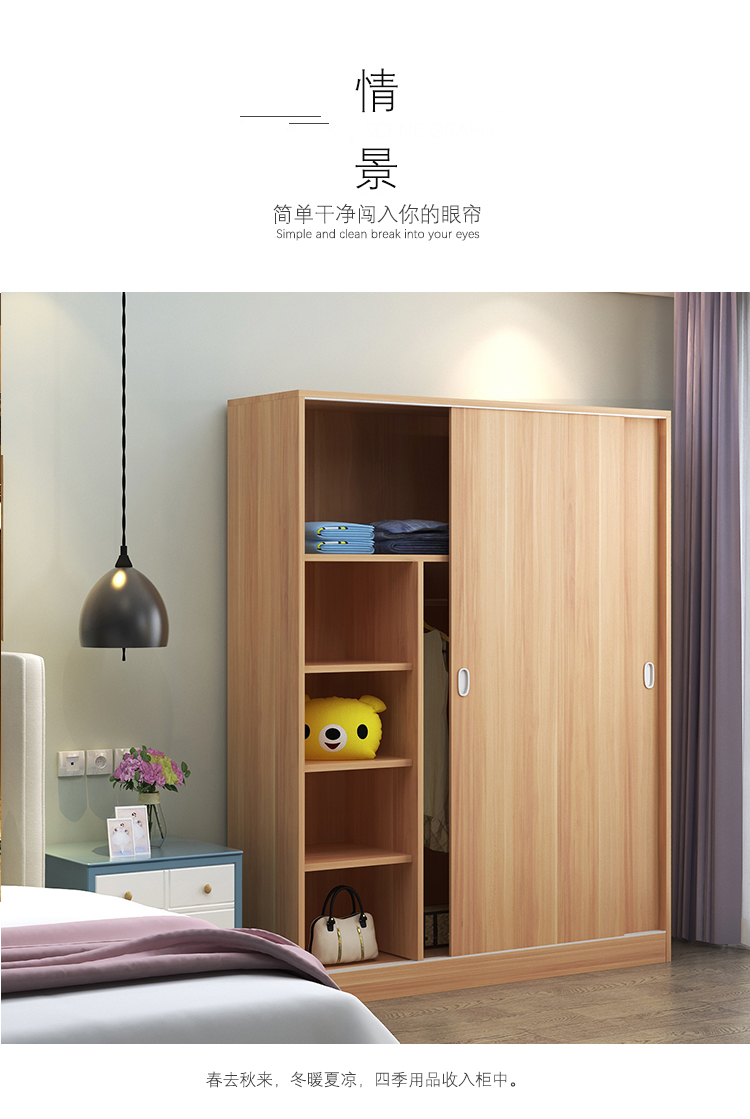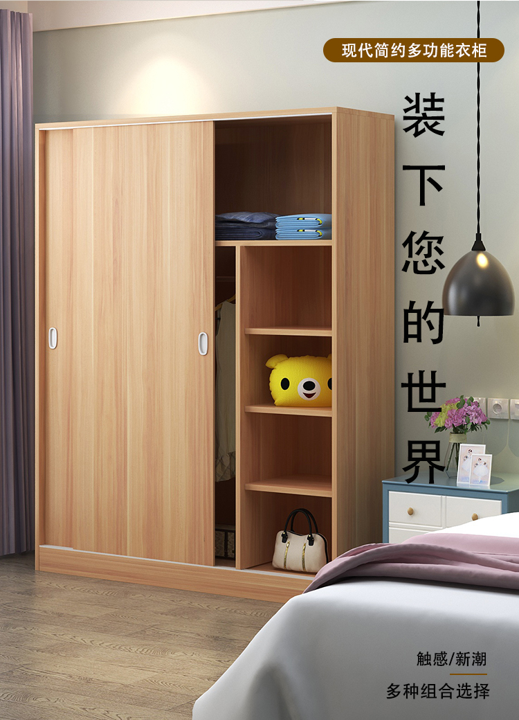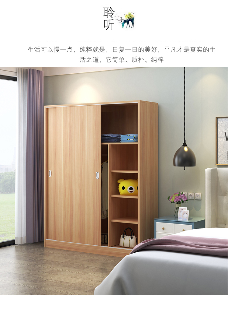 维仕蓝 移门更衣柜木质板式推拉门衣柜简约现代经济衣柜浅 胡桃色