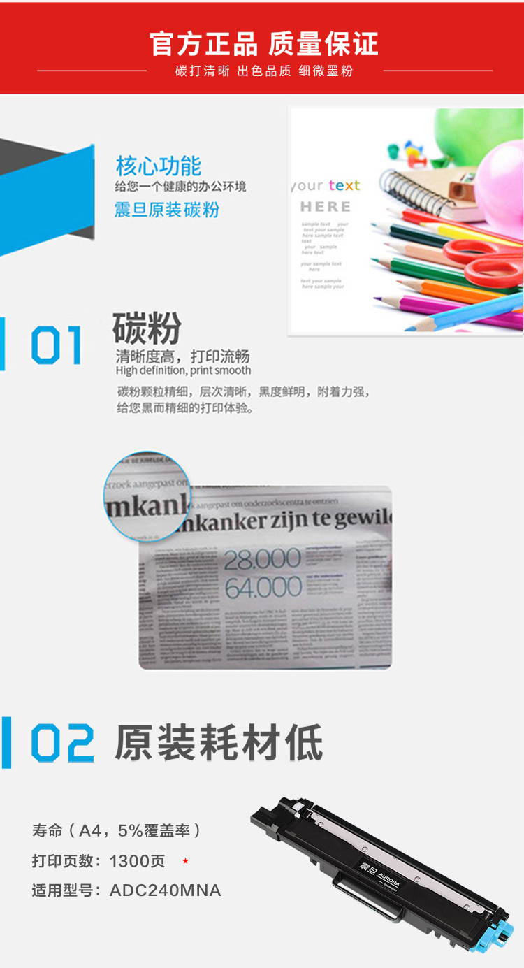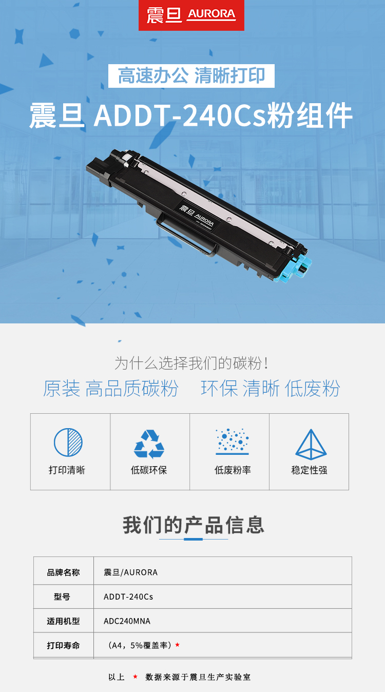 震旦(AURORA)ADDT-240CS 标容青色墨粉(适用于ADC240MNA)约1300页 青色