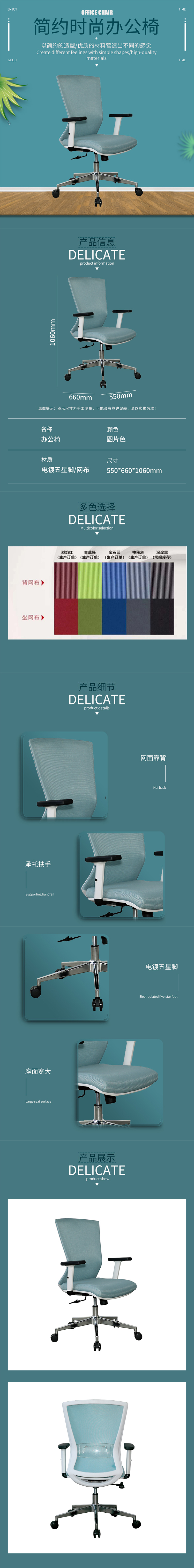企诺 网椅升降转椅办公职员椅 BGY-61 蓝色