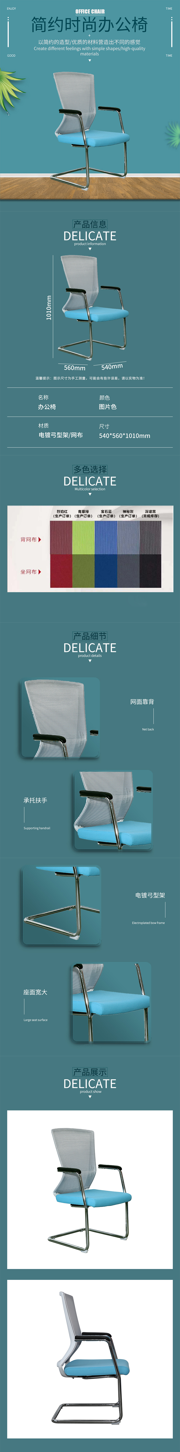 企诺 弓形椅电脑椅网椅靠背椅 BGY-62 灰蓝色