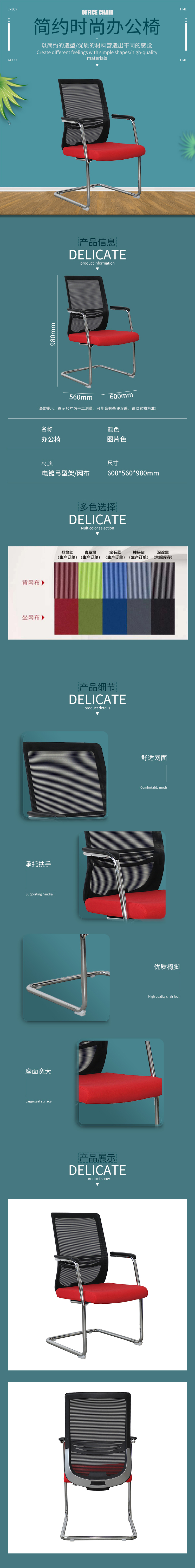 企诺 弓形椅靠背椅职员椅 BGY-63 黑红色