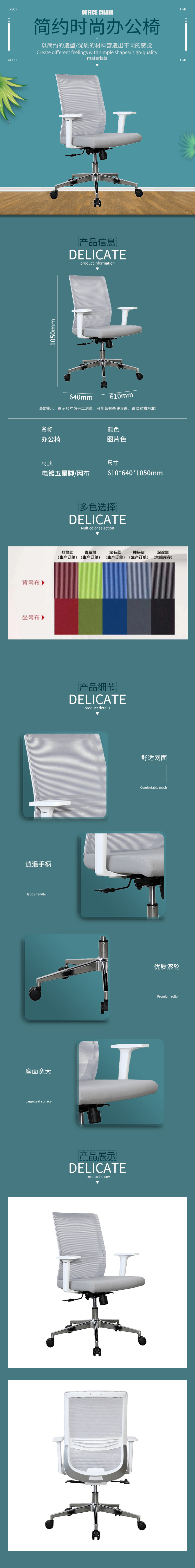 企诺 简约办公职员椅转椅网椅 BGY-64 灰色