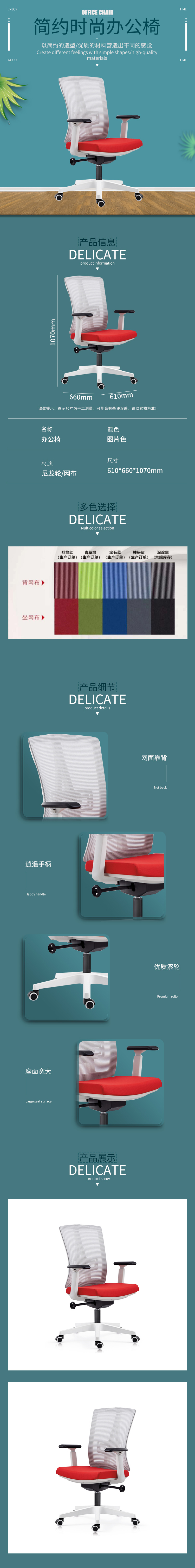 企诺 办公职员椅网椅升降转椅 BGY-66 灰红色