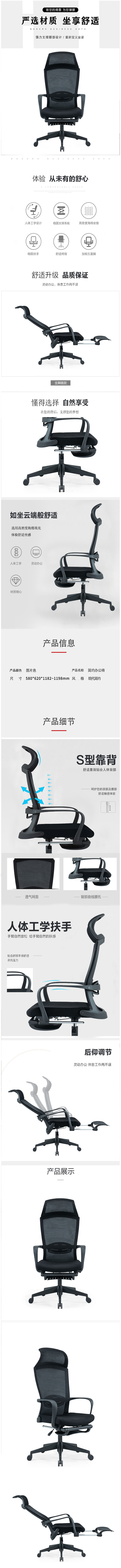 企诺 人体工学椅老板椅午睡椅会议椅带脚踏 BGY-75 黑色