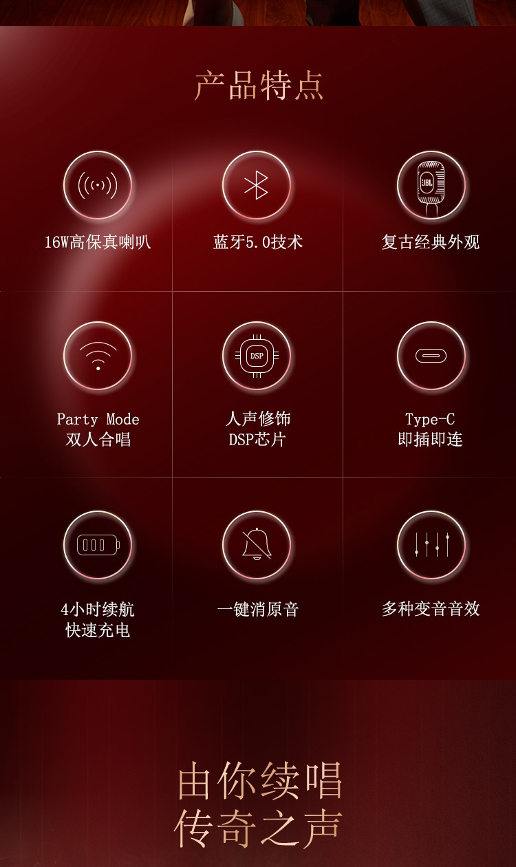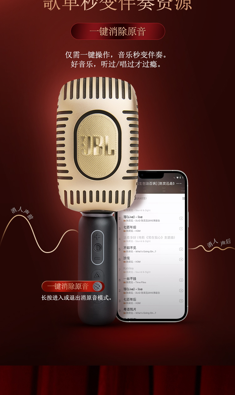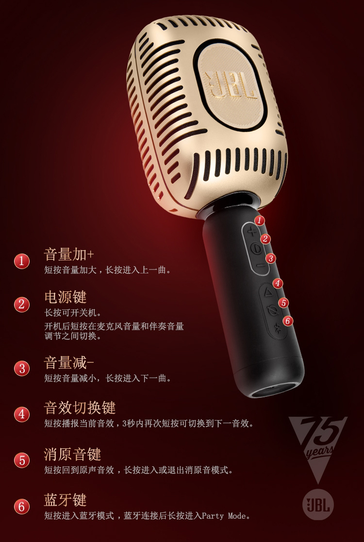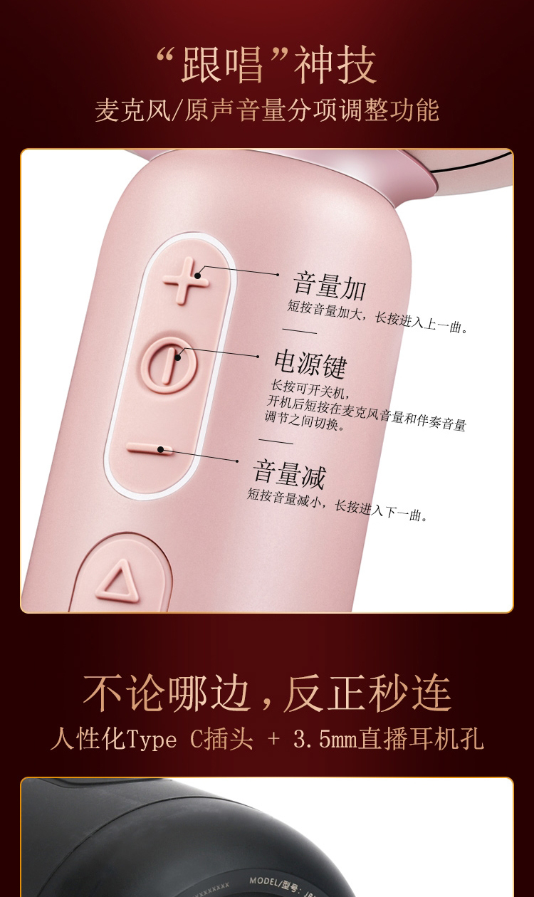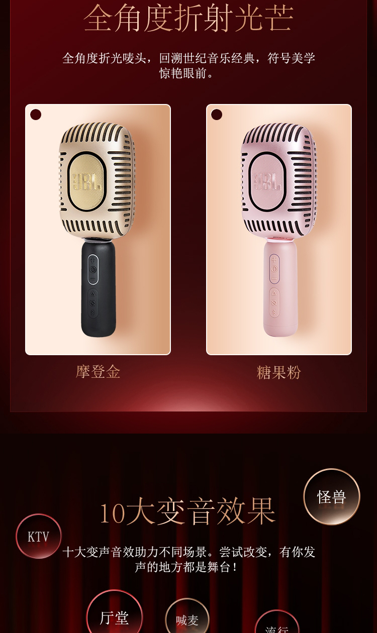 JBL 无线蓝牙话筒音响一体麦克风 KMC650(单价:个) 玫瑰金