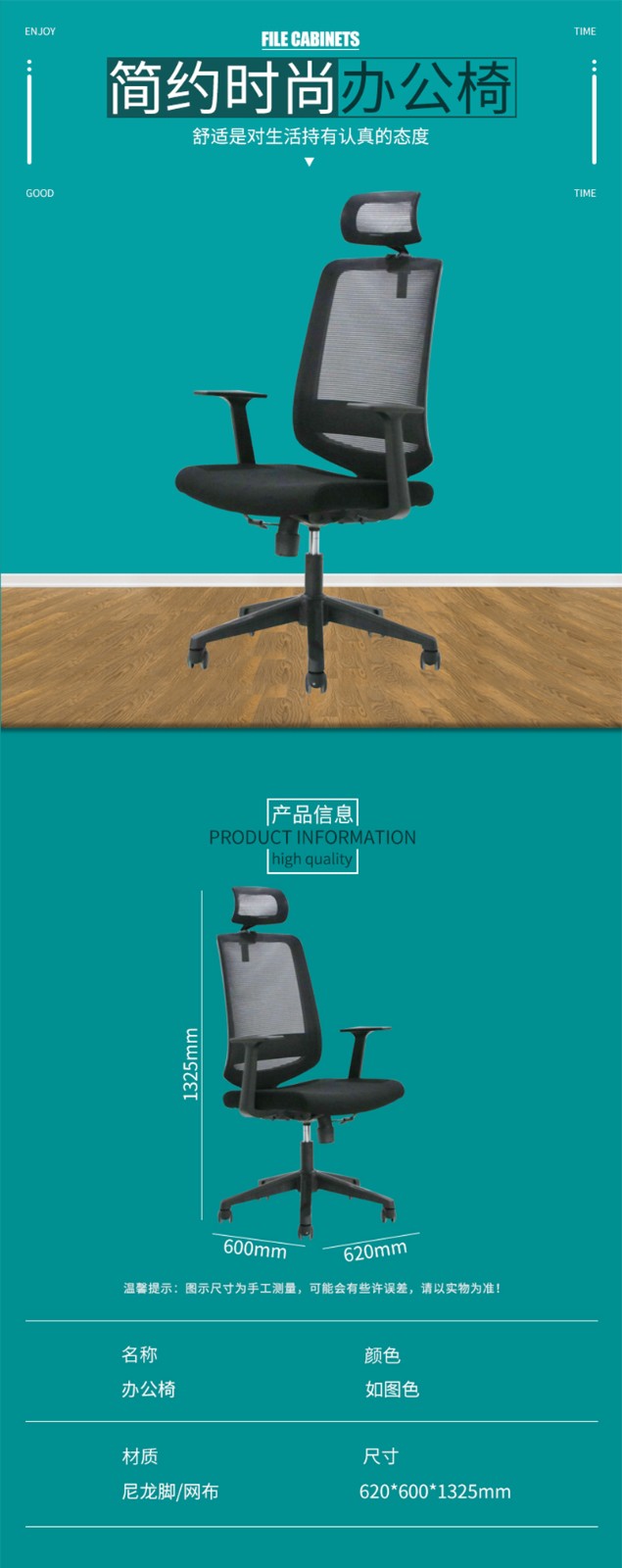 企诺 电脑椅办公椅职员椅带头枕椅子 BGY-93 黑色