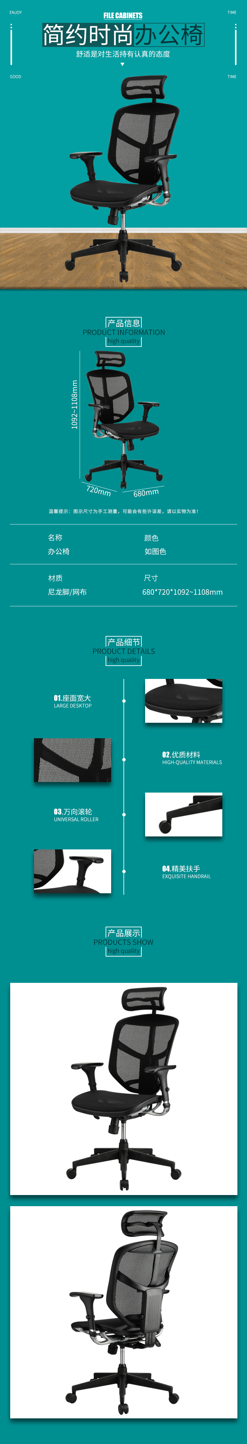 企诺 网椅职员椅主管椅转椅 BGY-96 黑色
