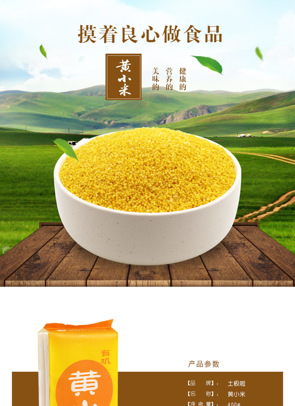 土极啦有机黄小米400g 东北杂粮养胃小米粥早餐粥 4袋 原色