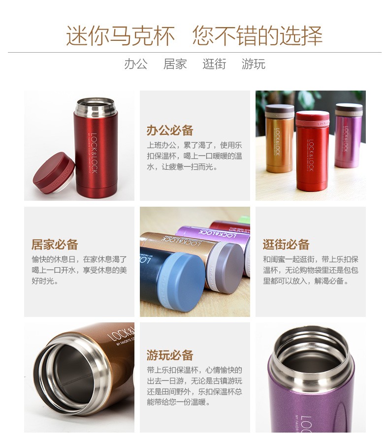 乐扣乐扣 迷你缤纷五彩保温杯200ml LHC551(单位:个)黑色 黑色