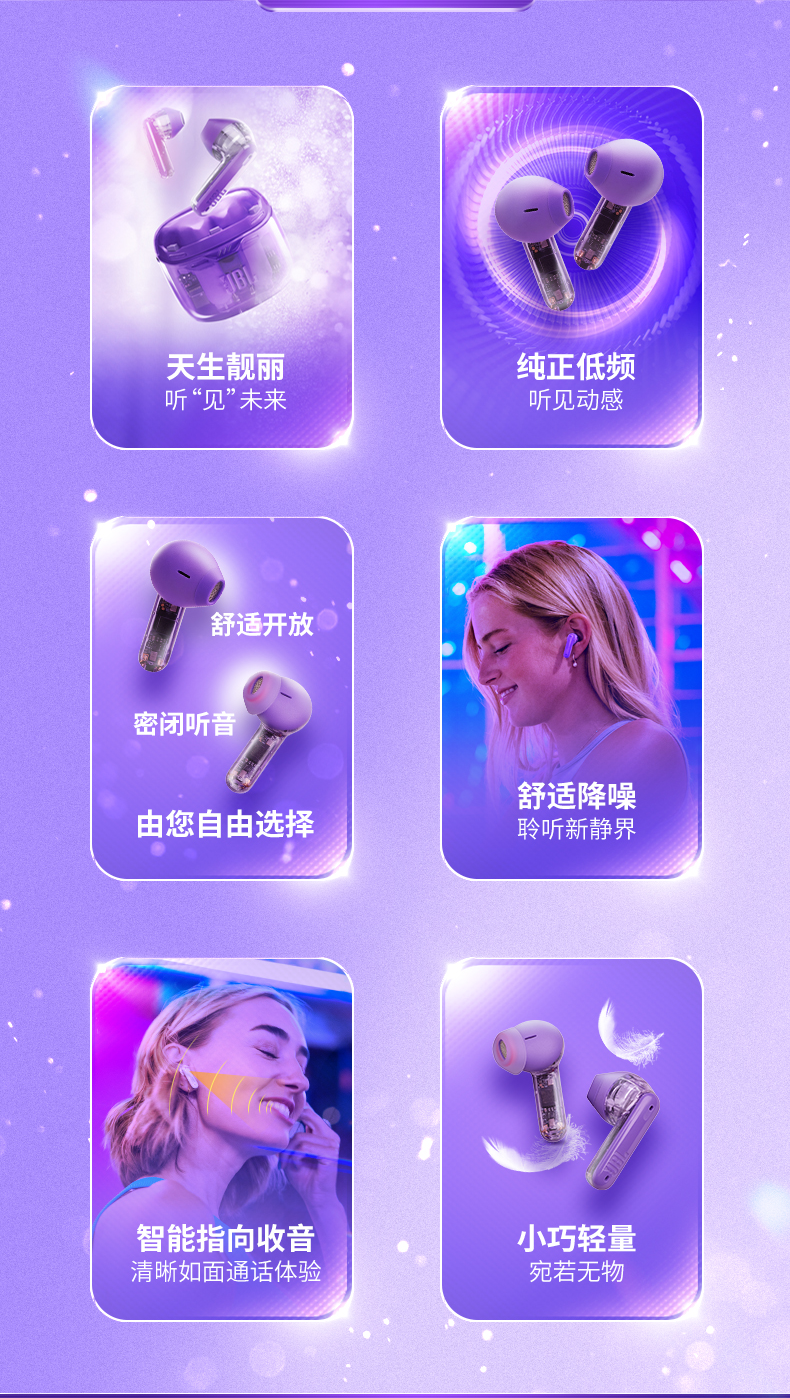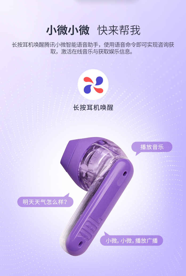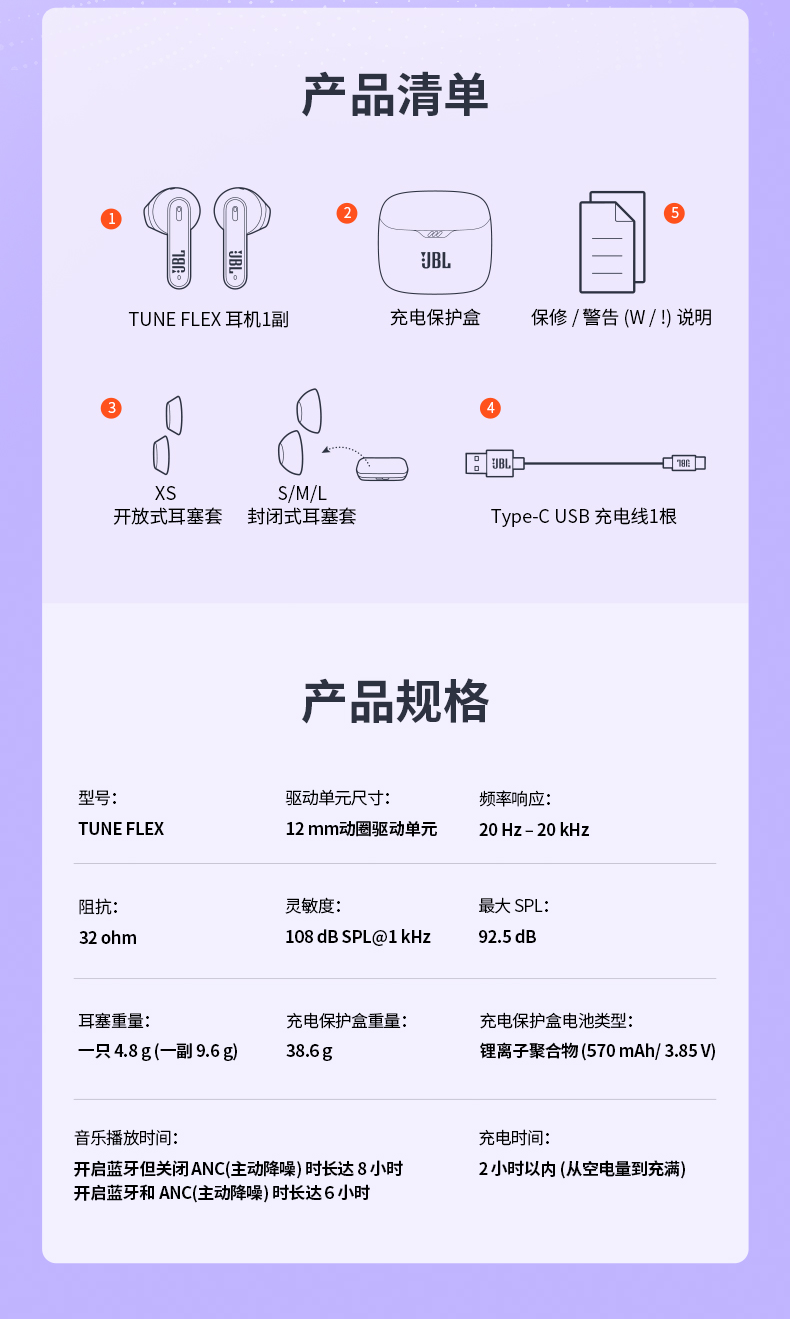 JBL 小晶豆真无线半入耳主动降噪运动蓝牙耳机TUNE FLEX 白色