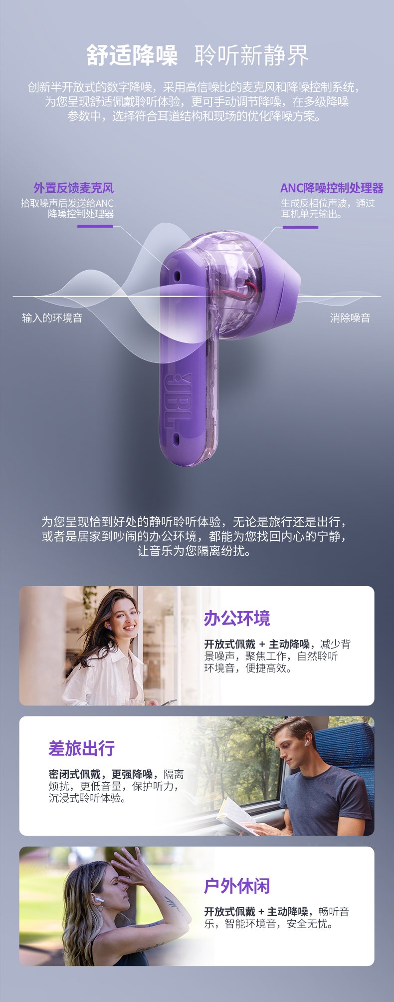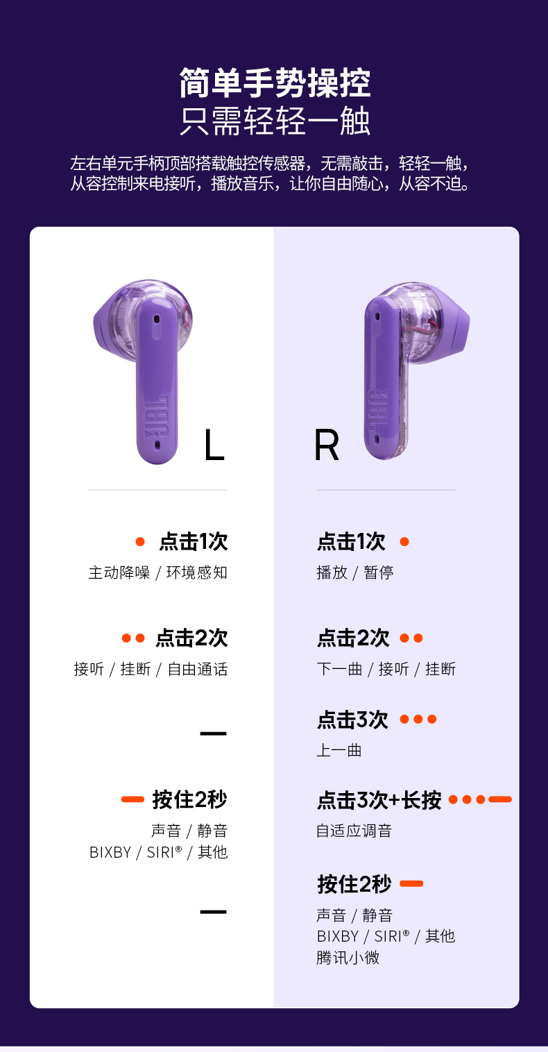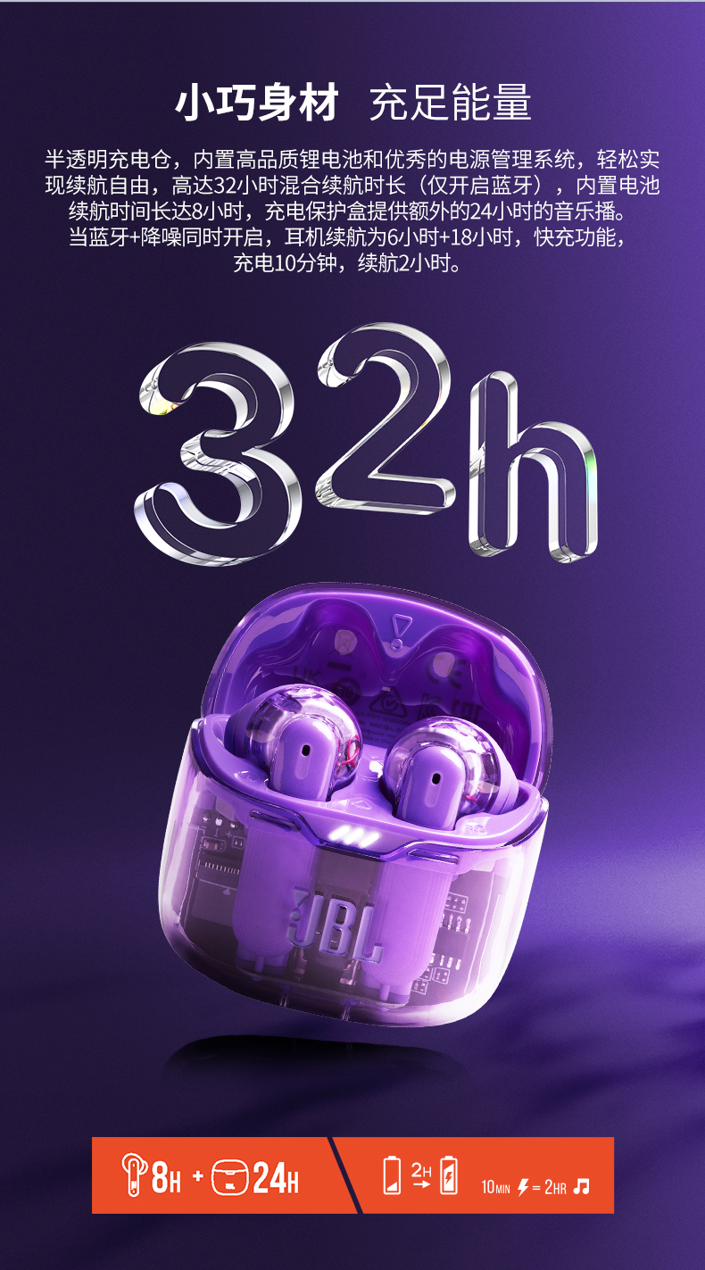 JBL 小晶豆真无线半入耳主动降噪运动蓝牙耳机TUNE FLEX 白色