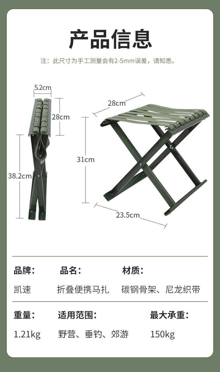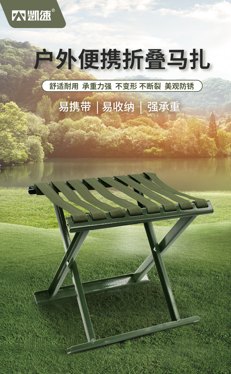 欧达 户外马扎折叠椅 临时休息椅 画画采风椅 活动休息椅 便携折叠凳子 军绿色