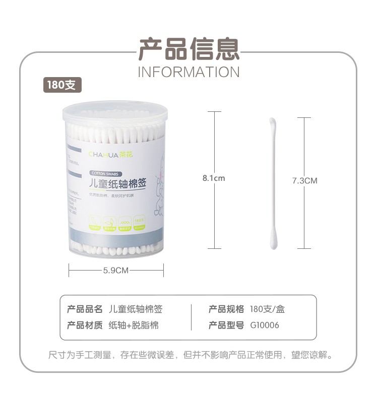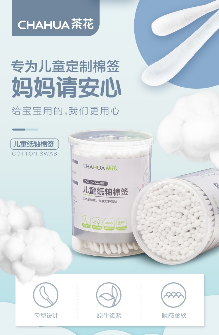 茶花 双头耳孔肚脐鼻孔清洁棉棒(180支)G10006 白色