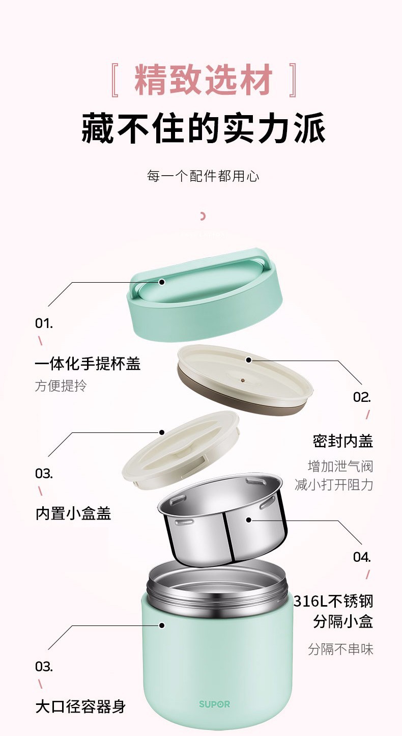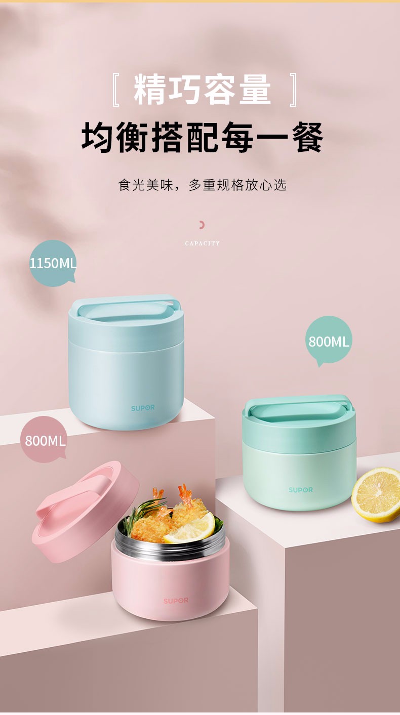 苏泊尔(SUPOR)KC115FL10保温饭盒316L不锈钢便当盒1150ML分格款(个) 梦幻蓝