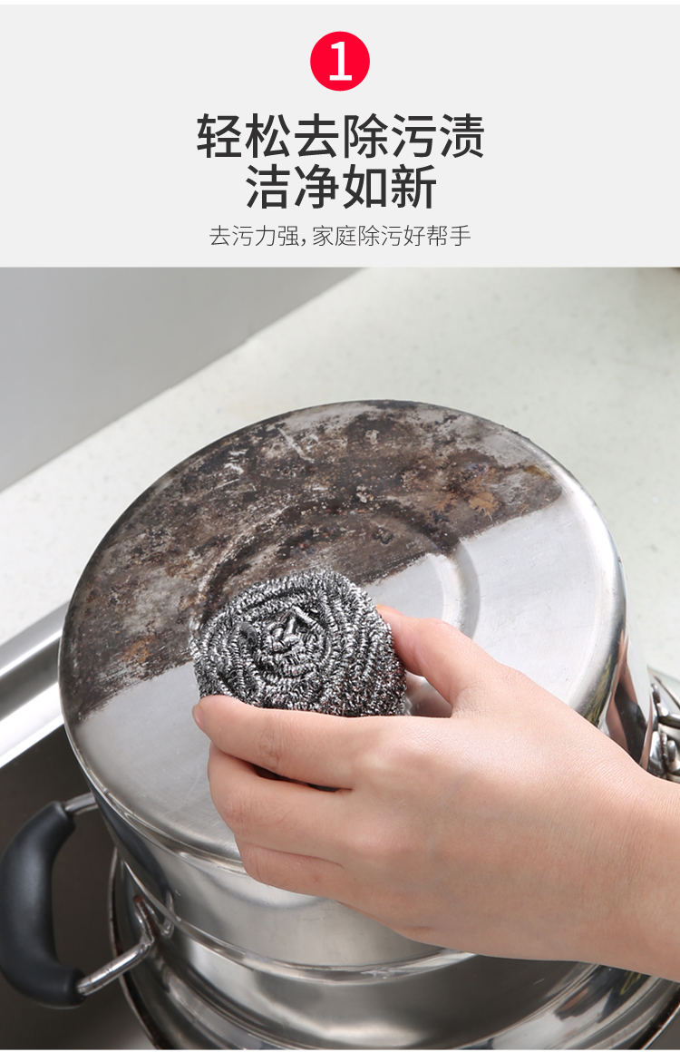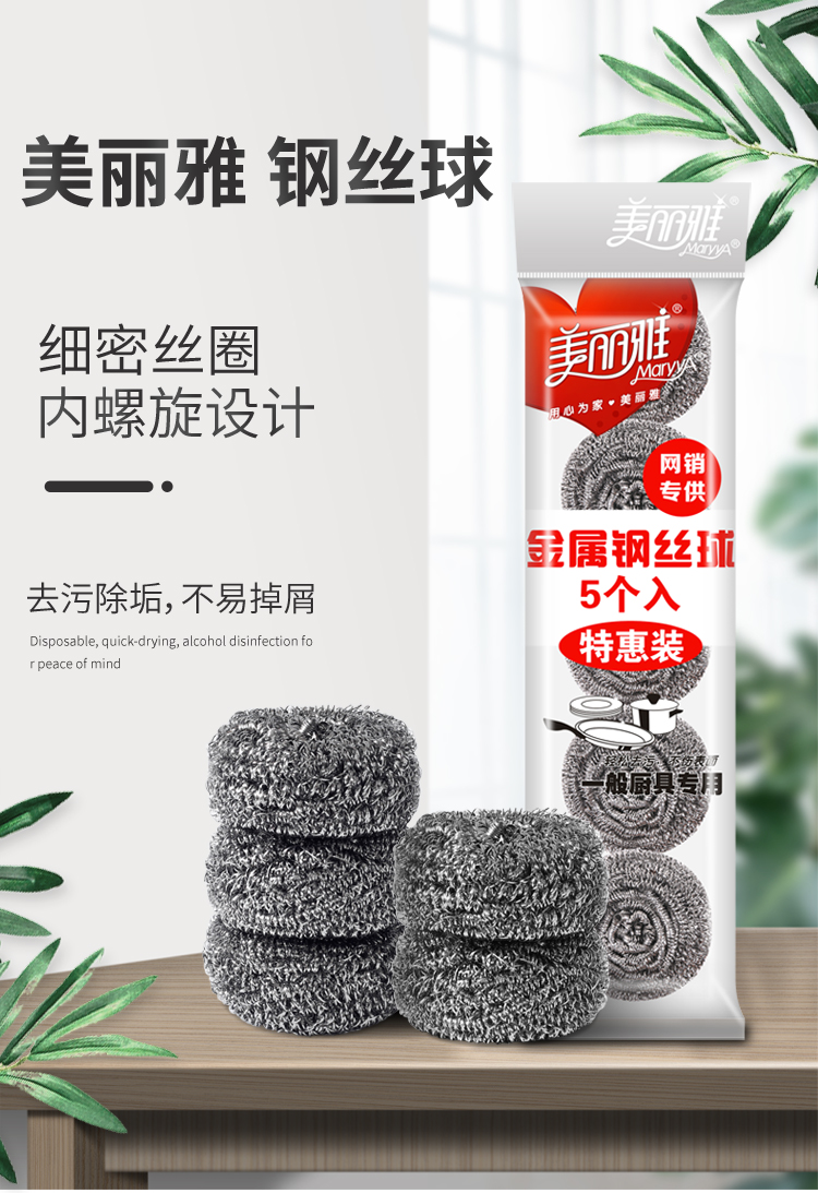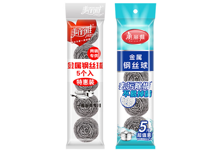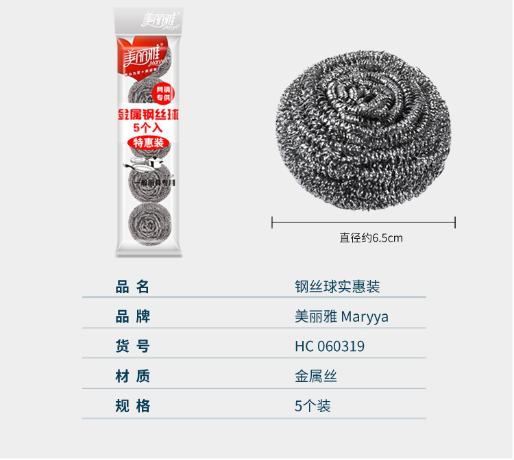 美丽雅 钢丝球刷子厨房洗碗去油污清洁铁丝球钢丝刷锅清洁球 特惠5个装 黑色