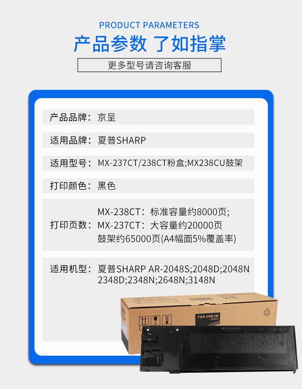 京呈MX-237CT粉盒适用夏普2048S墨盒2348SV粉盒3148N硒鼓2421碳粉盒2221R MX-237CT墨粉盒 1支装 MX-237CT墨粉盒 1支装