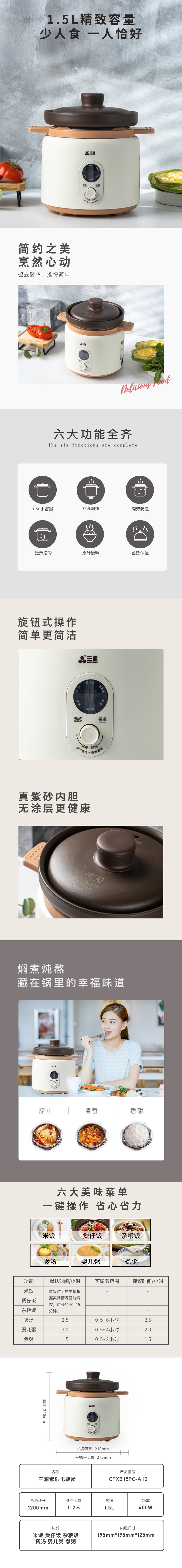 三源(SANYUAN) 紫砂电饭锅CFXB15PC-A10加厚陶瓷1.5L内胆电饭煲煮汤煲粥预约 米白色