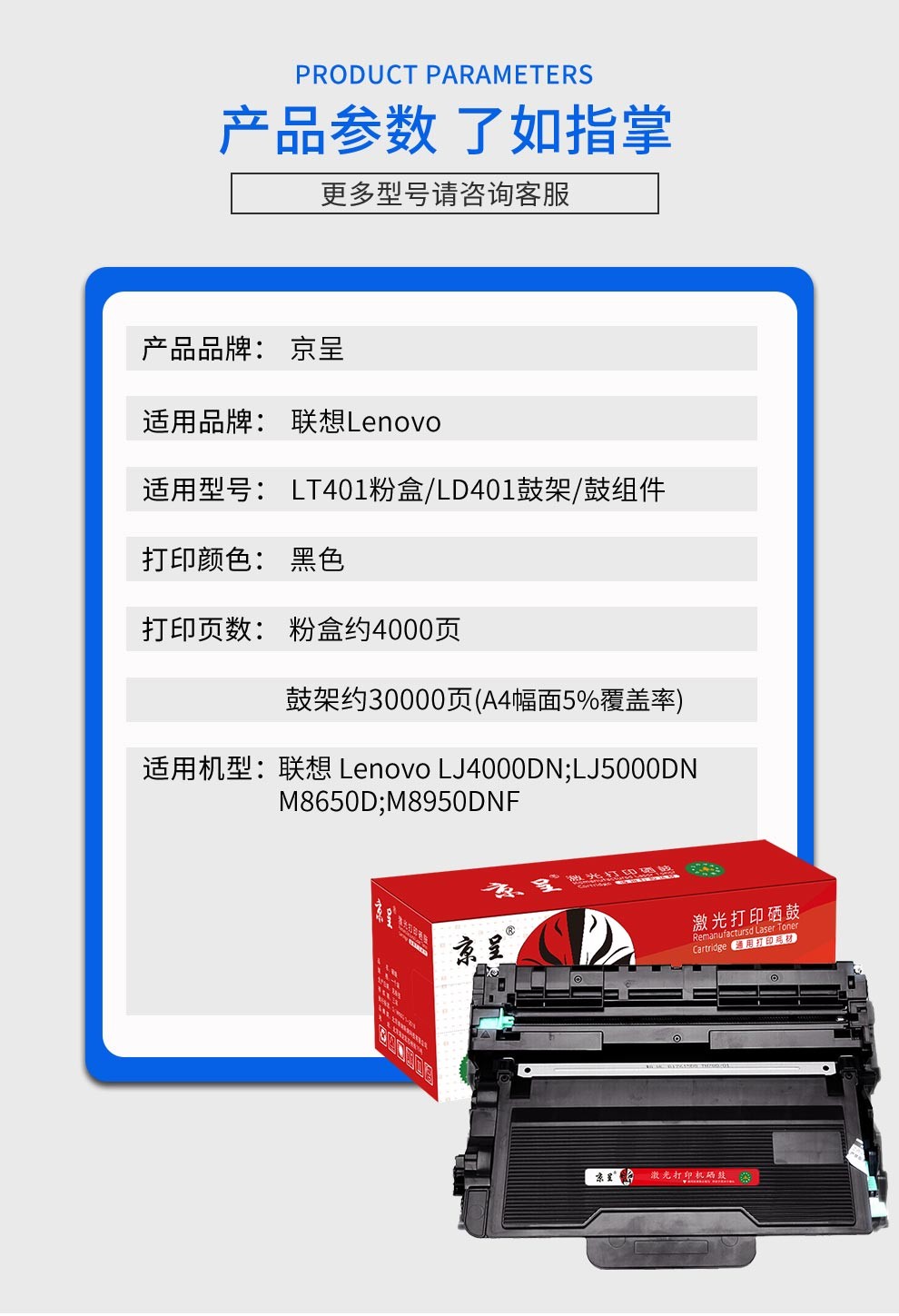京呈适用联想LT401H粉盒M8650DN墨盒M8950DNF碳粉LJ5000DN墨粉LD401硒鼓 【16000页】碳粉 4瓶装 【16000页】碳粉 4瓶装