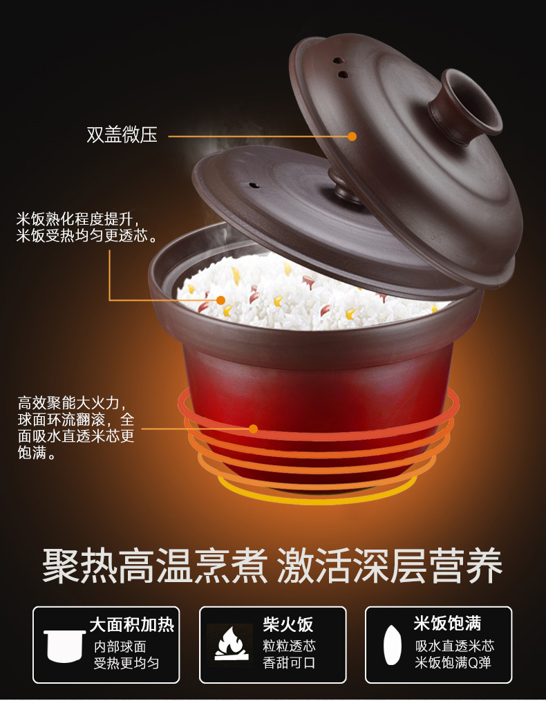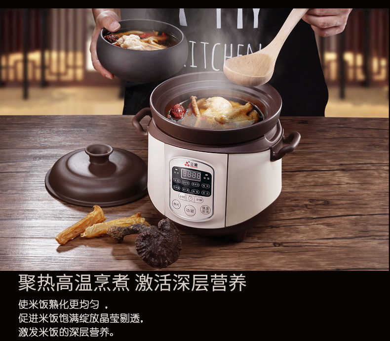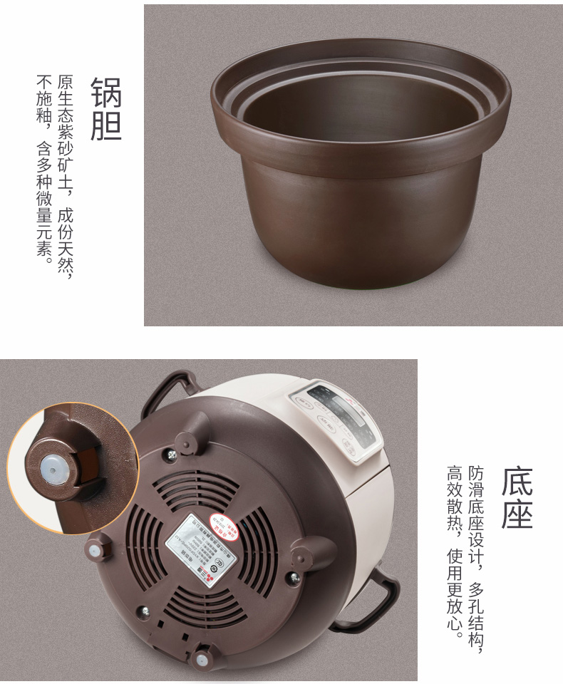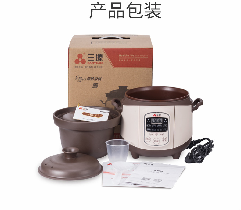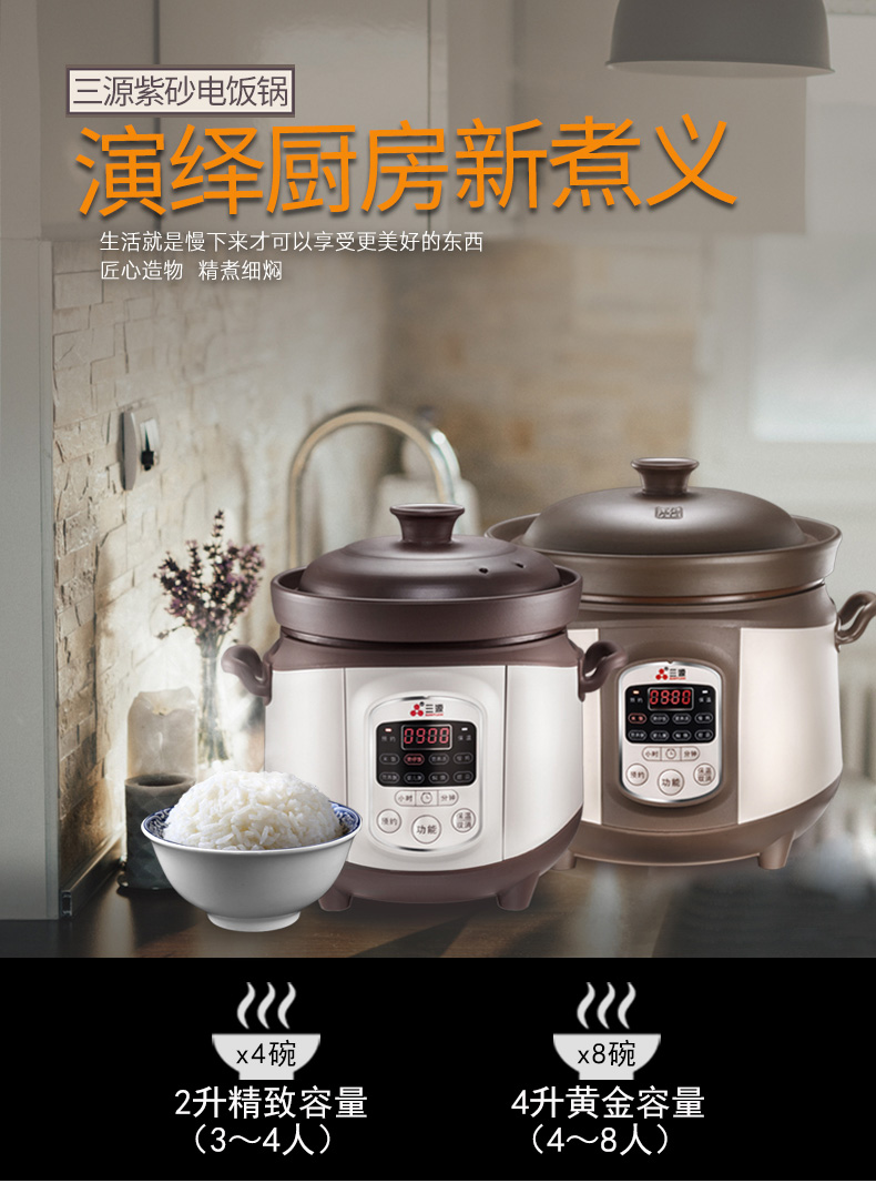 三源(SANYUAN) 紫砂电饭锅XYDFG20PC-A12加厚陶瓷2L内胆电饭煲煮汤煲粥预约按键操作 咖啡色