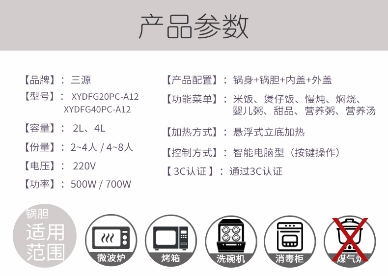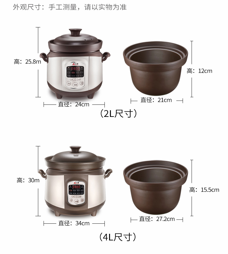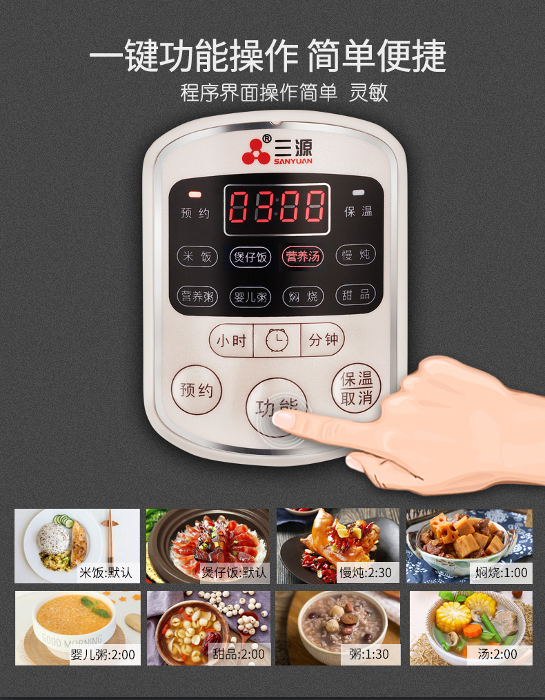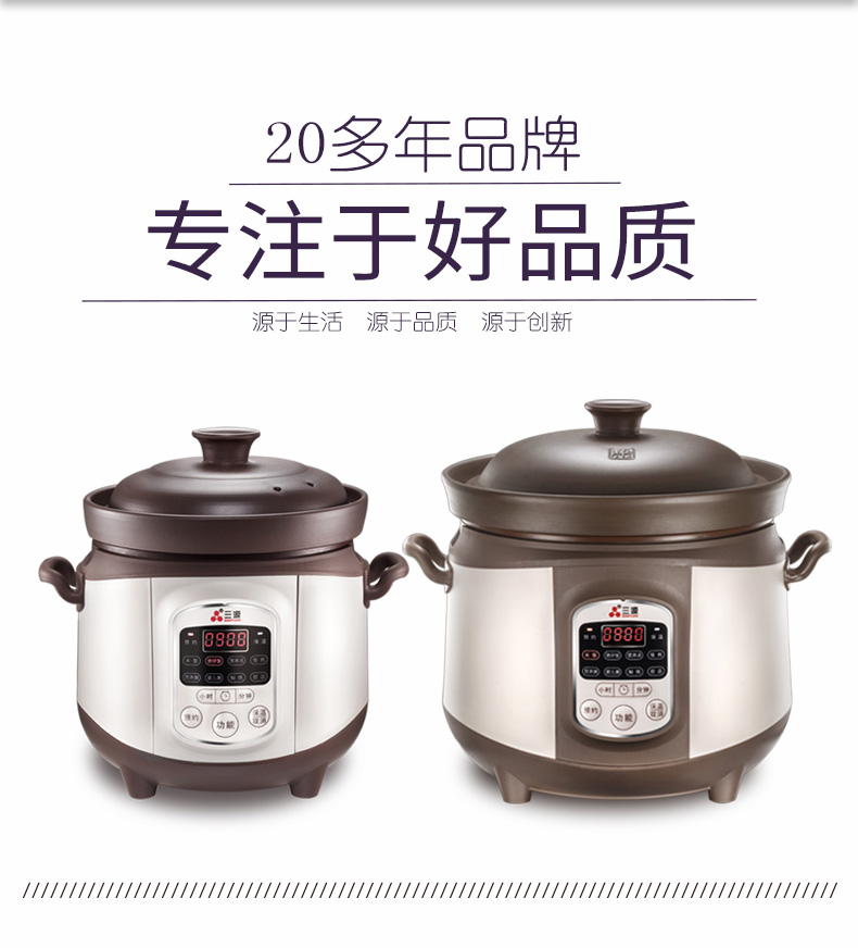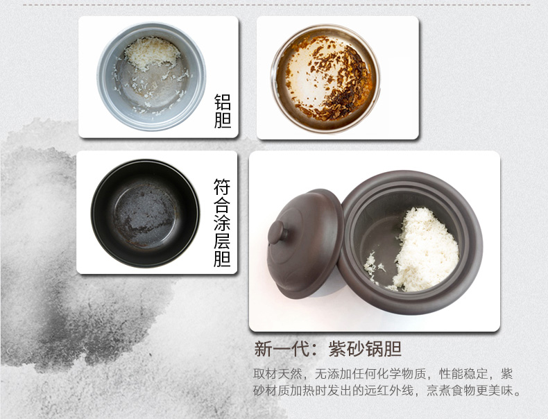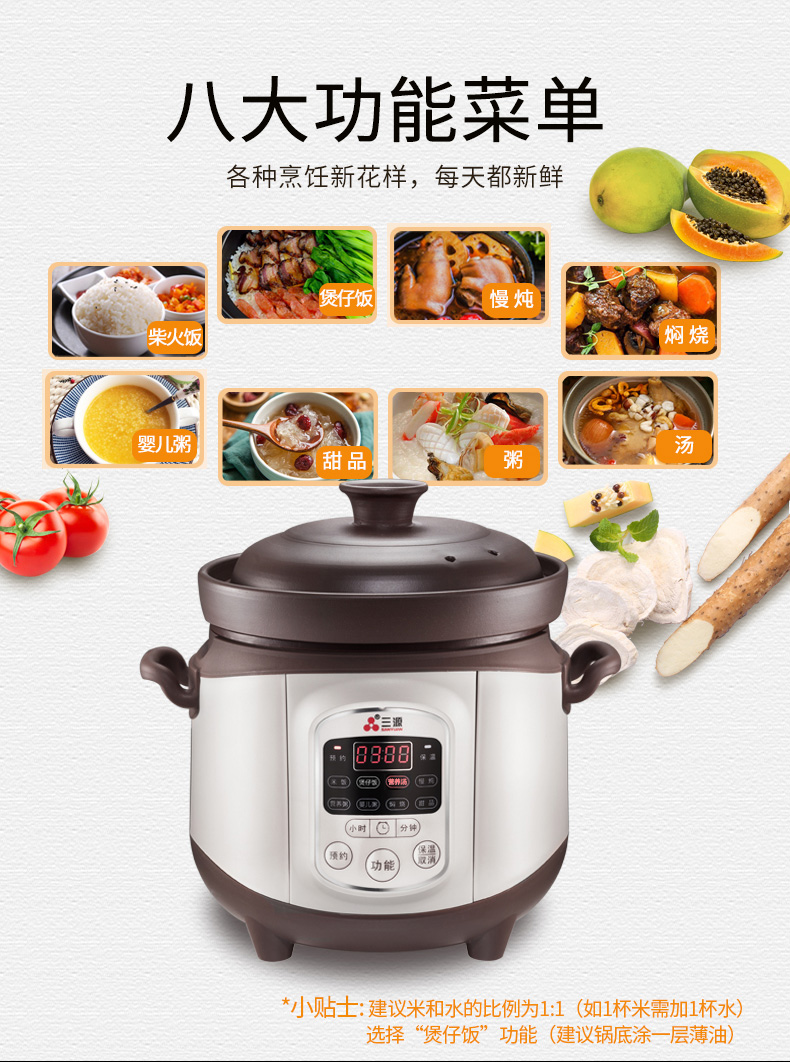 三源(SANYUAN) 紫砂电饭锅XYDFG20PC-A12加厚陶瓷2L内胆电饭煲煮汤煲粥预约按键操作 咖啡色
