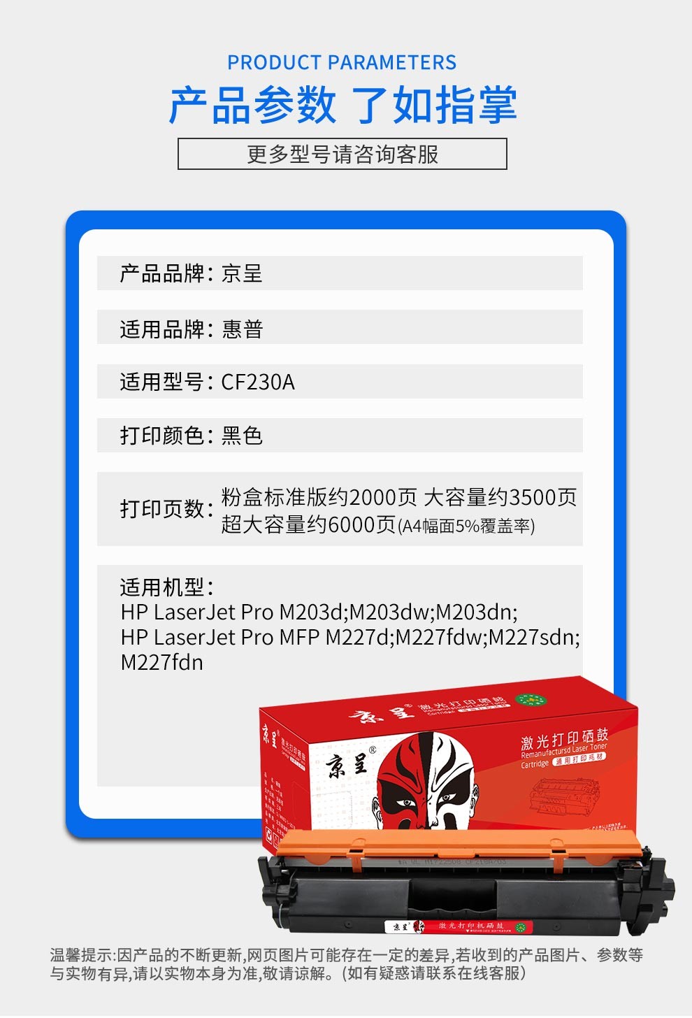 京呈m227fdw硒鼓适用惠普cf230a硒鼓227fdw墨盒打印机227fdn打印机203dw粉盒/支 CF230A标准容量粉盒 2000页