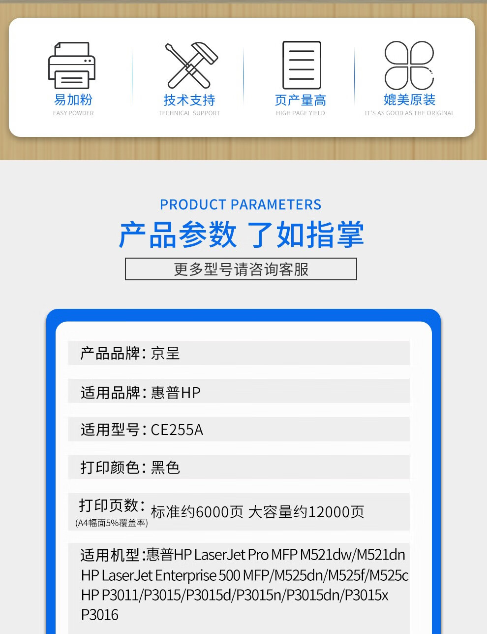 京呈适用惠普CE255A硒鼓m521dw P3015 3015DN P3011打印机墨盒3015X CE255A大容量硒鼓12000页
